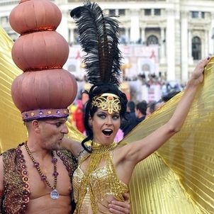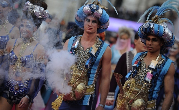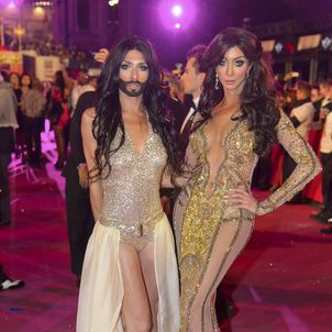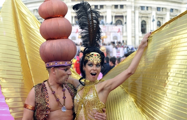 Roberto Cavalli designed the Life Ball Fashion Show in support of the fight against HIV/AIDS on 25 May 2013 presenting highlights of his stylish extravagance in a great fashion retrospective to attendees who themselves were dressed in customes themed after "One Thousand and One Nights"