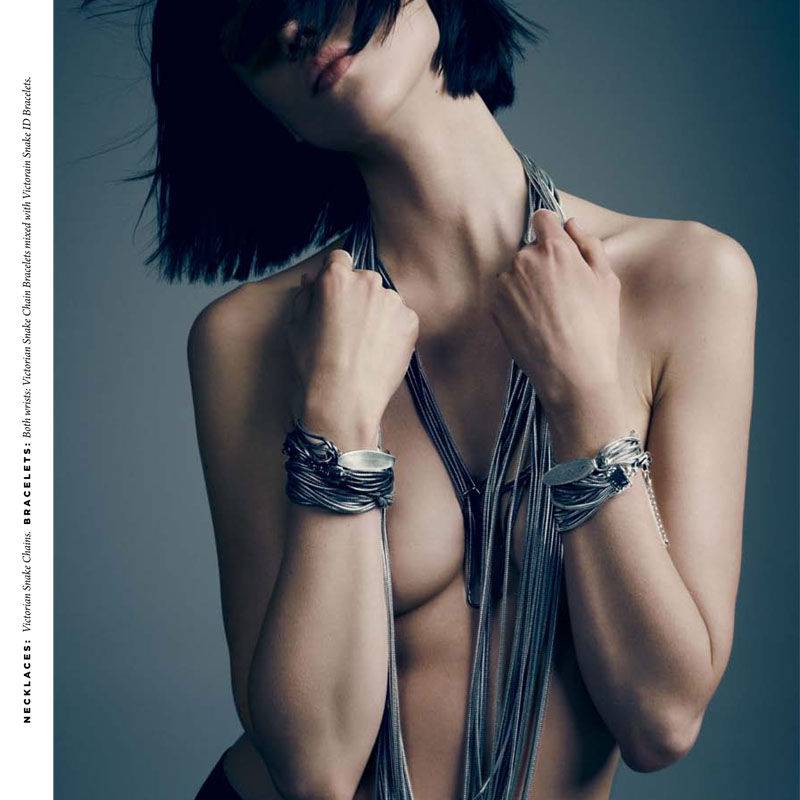 Jewelry label "Made Her Think" from Meredith Kahn's Fall 2011 collection is entitled "Fight or Flight" photographed by James Macari and styled by James M Rosenthal featuring model Marianna.