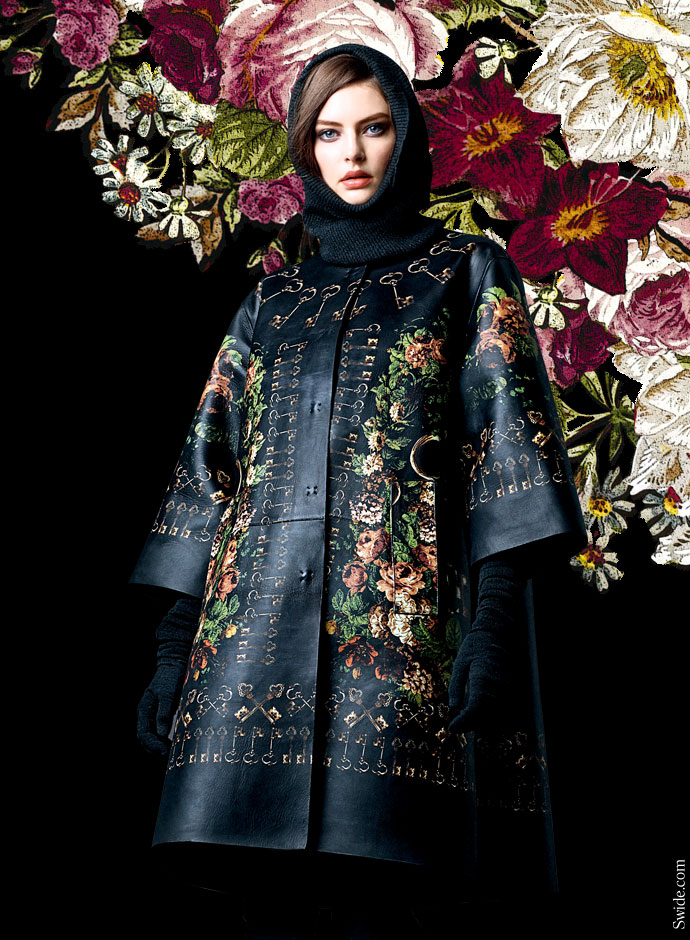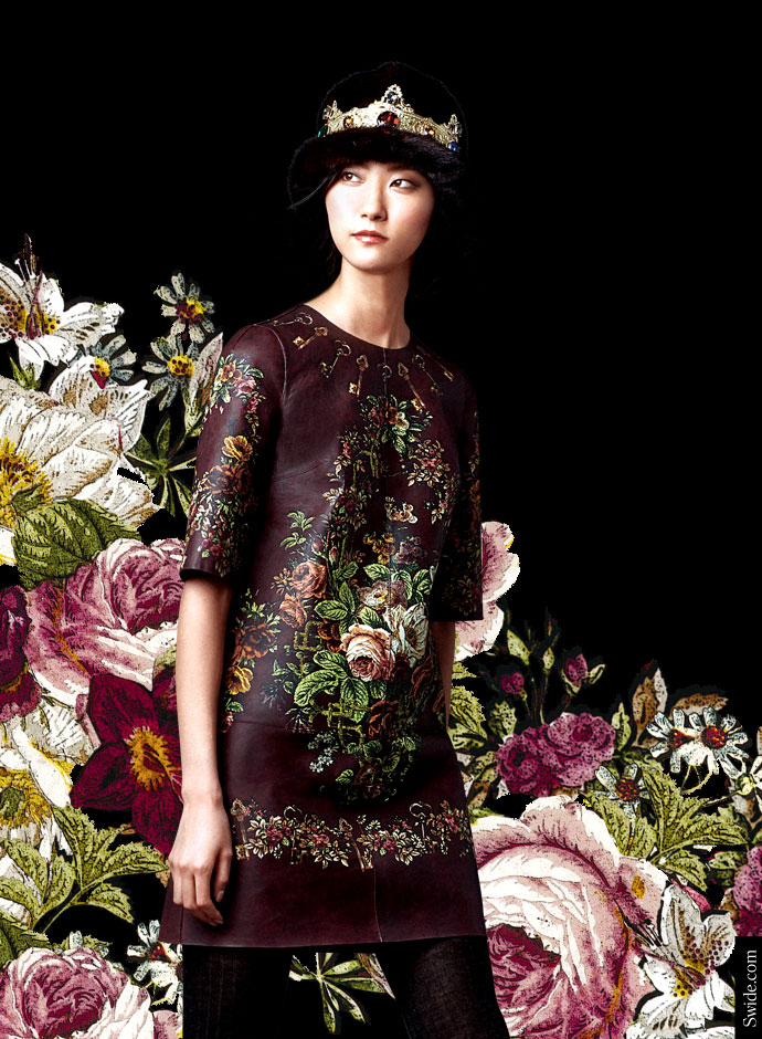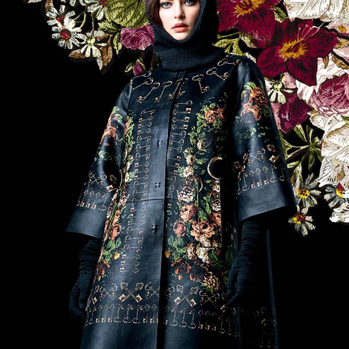The strong medieval influences in the Dolce & Gabbana Fall/Winter 2014/15 collection are visible in the silhouettes, in the colours, fabrics and prints. Amongst the most noble, and the most medieval looking outfits, the leather pieces win hands down.