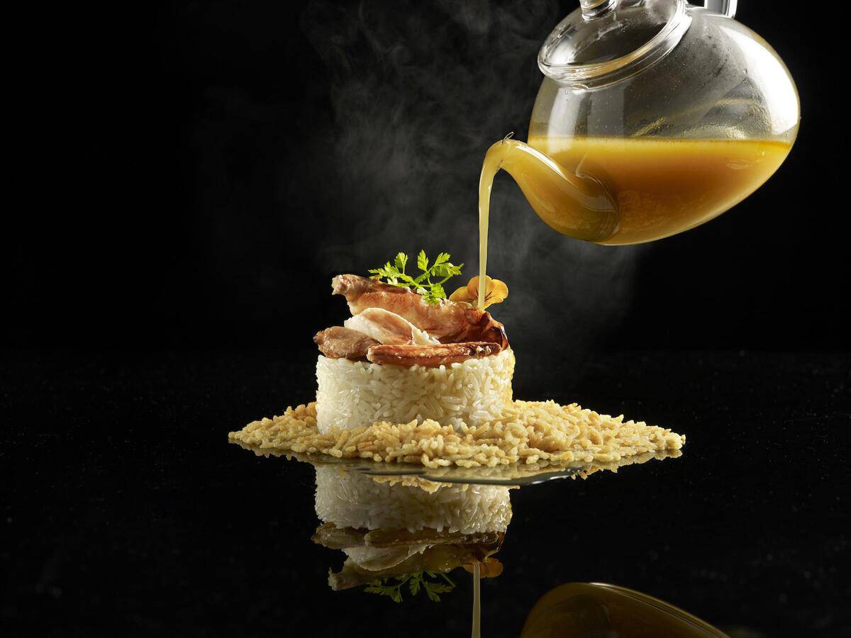 This is followed by a crispy crab claw filo topped with crab roe, and fragrant rice in superior broth with crab meat paired with crispy rice.