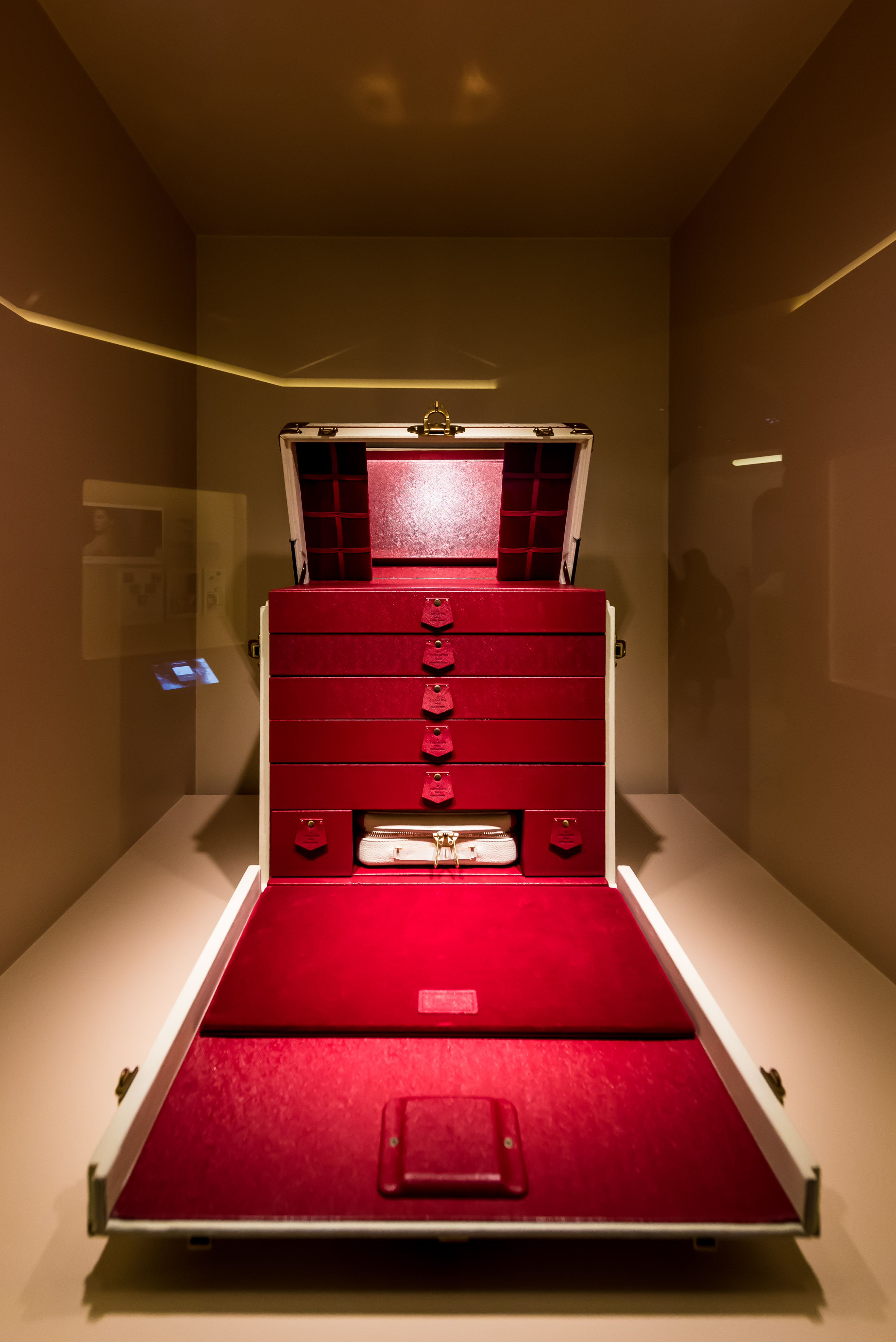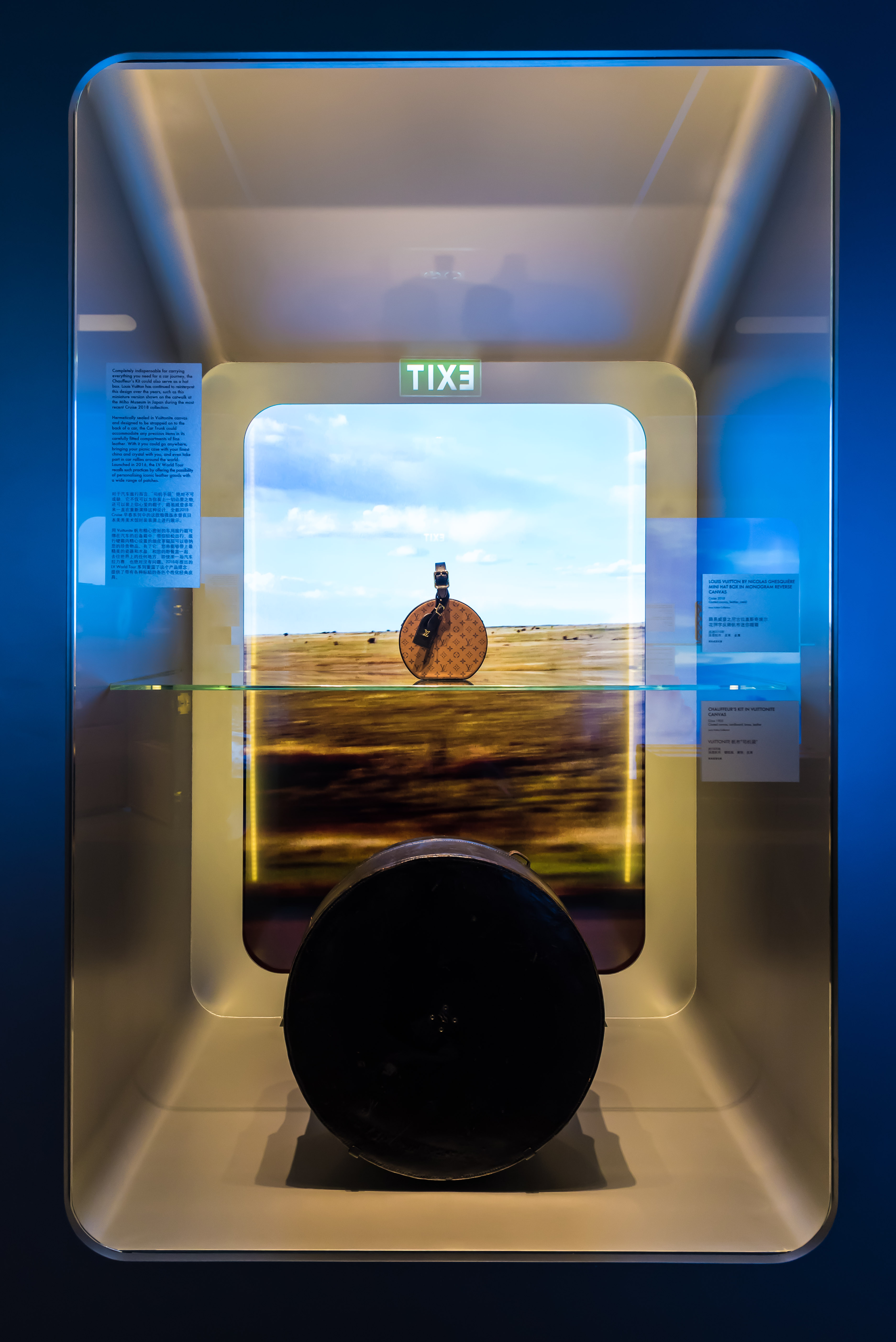 The exhibition follows a visual timeline, focusing on five key aspects such as the Codes of the House, Journeys around the World, Elegance and Beauty in Motion, Louis Vuitton and the Arts and Magic Malle.