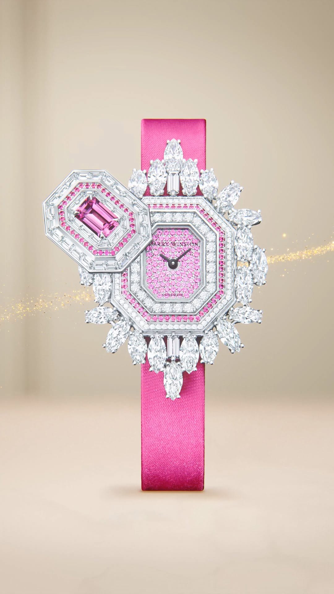 Every moment takes on a crystalline clarity when it is measured in the incomparable light of Harry Winston. The Ultimate Emerald Signature is a virtuoso display of high jewelry versatility, adorned with a breathtaking array of diamonds and 194 brilliant-cut pink sapphires that glow with a romantic intensity.
