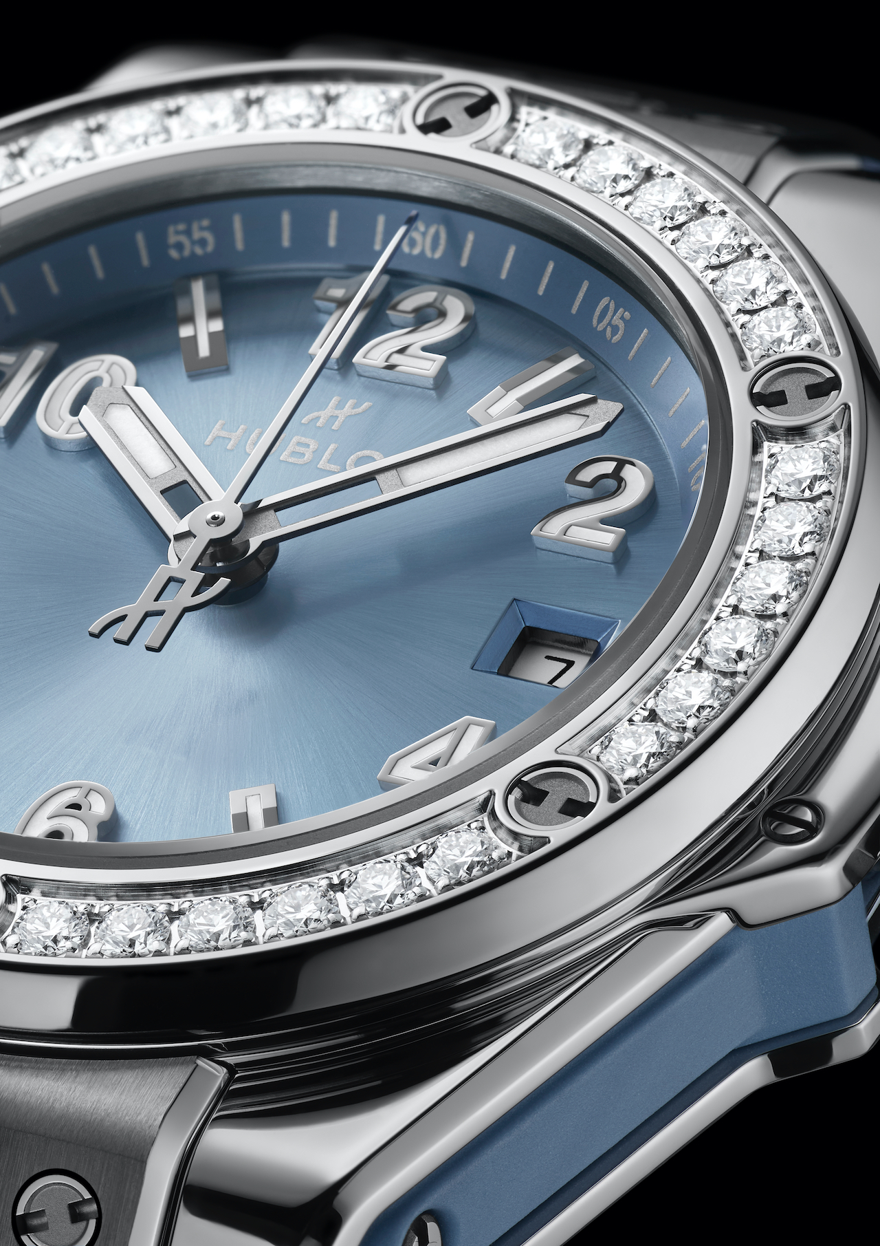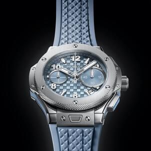 The bezels of the 33 mm Big Bang and the 32 mm Spirit of Big Bang are adorned with 36 and 44 diamonds respectively, all certified to the highest ethical standards. These precious additions accentuate the subtle variations of the sunray finished dials, which reveal an ever-changing palette of blue and gray. Crafted in stainless steel, these models offer a modern cameo effect that blends naturally with the coal blue rubber straps.
