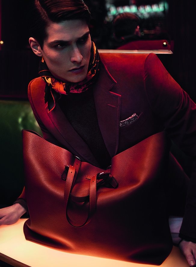 For Gucci's latest advertising campaign, photographers Alan Mert and Marcus Piggot captured a decidedly decadent mood inside a famed Viennese cafe. Shot on location in Vienna's American Bar— a suggestive location created by Austrian architect Adolf Loos at the beginning of the 20th century—the rich portfolio stars models Karmen Pedaru, Nadja Bender and Staffan Lindstrom. Using warm tones to highlight fall's sensual chic, the campaign, like the collection, is a master class in modern opulence.
