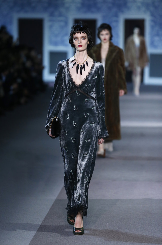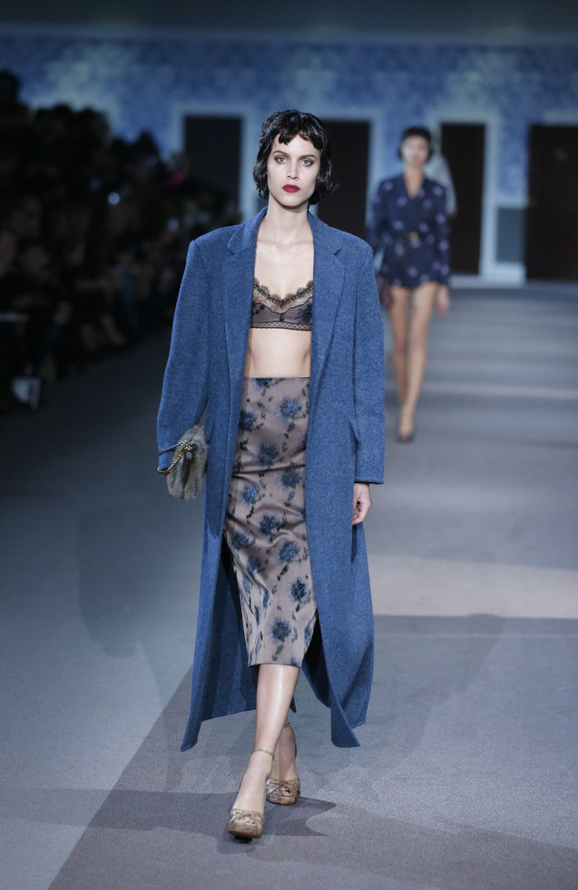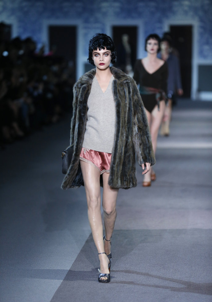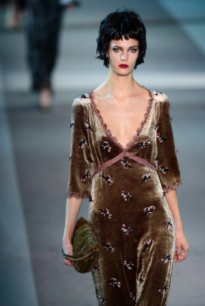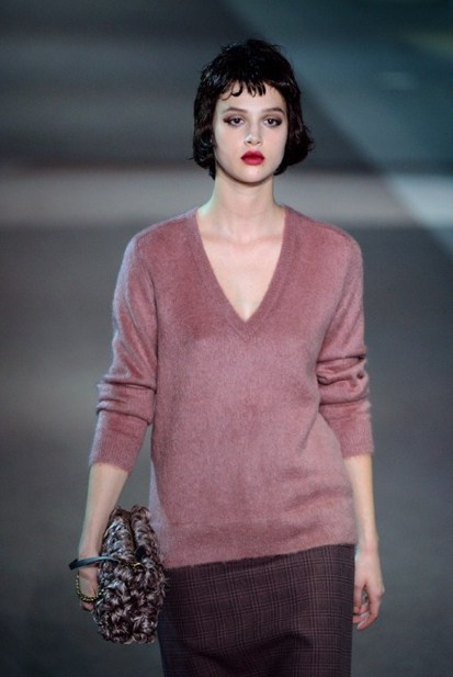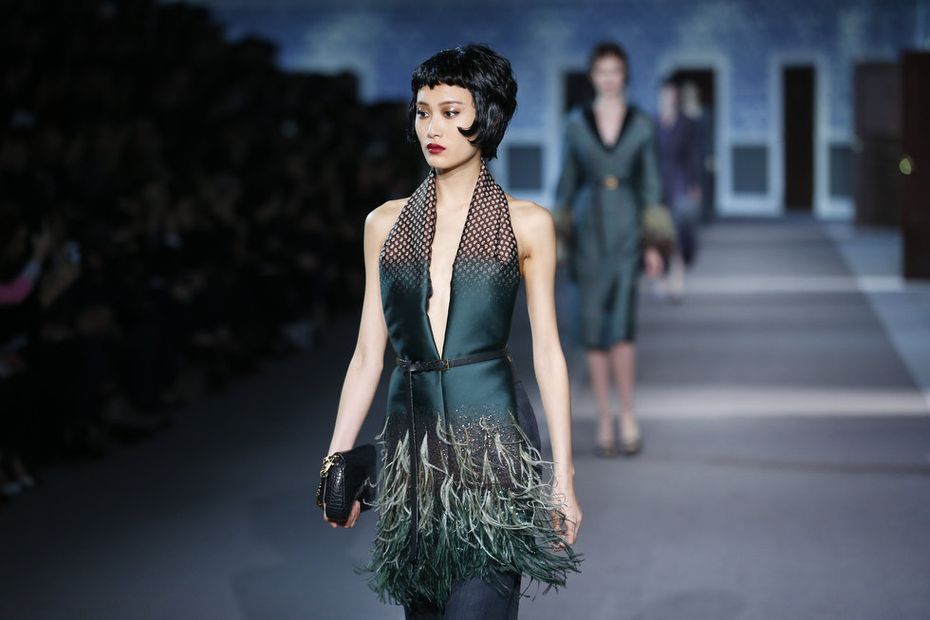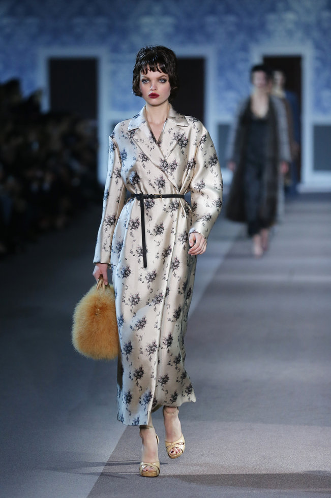 The classic Hollywood scene of a mysterious and glamorous woman leaving an anonymous hotel room inspired Louis Vuitton’s ready-to-wear show, moving the house in a more sensual, feminine direction. A carpeted hotel corridor with a series of numbered doors was recreated inside the Louvre for the fall 2013 show, to the sound of nostalgic piano.
