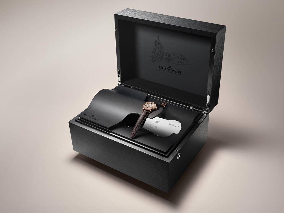 To complete the sensory experience, the watch is presented in a case crafted from resonance spruce sourced from the Risoud forest which acts as a natural soundboard to amplify the chime.
