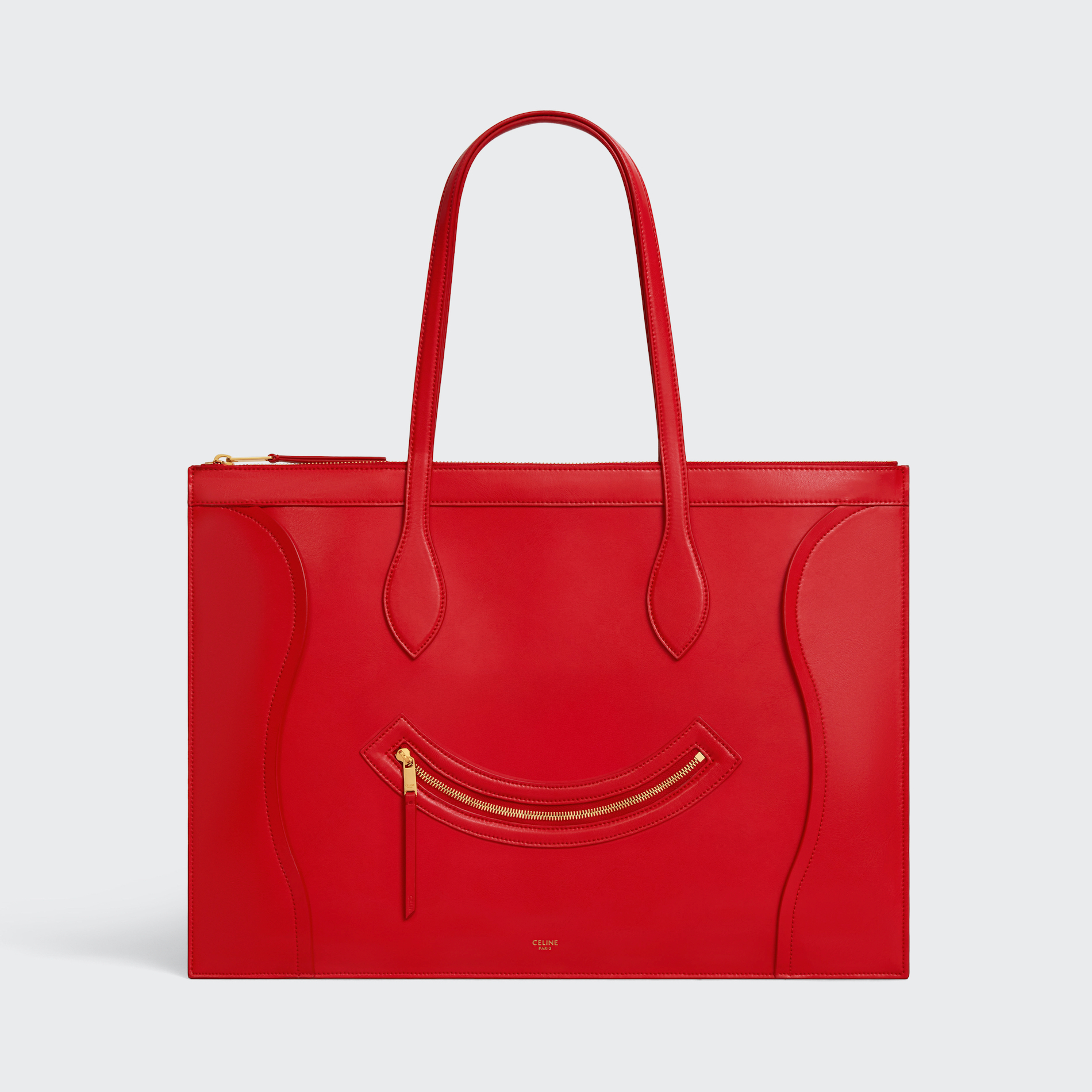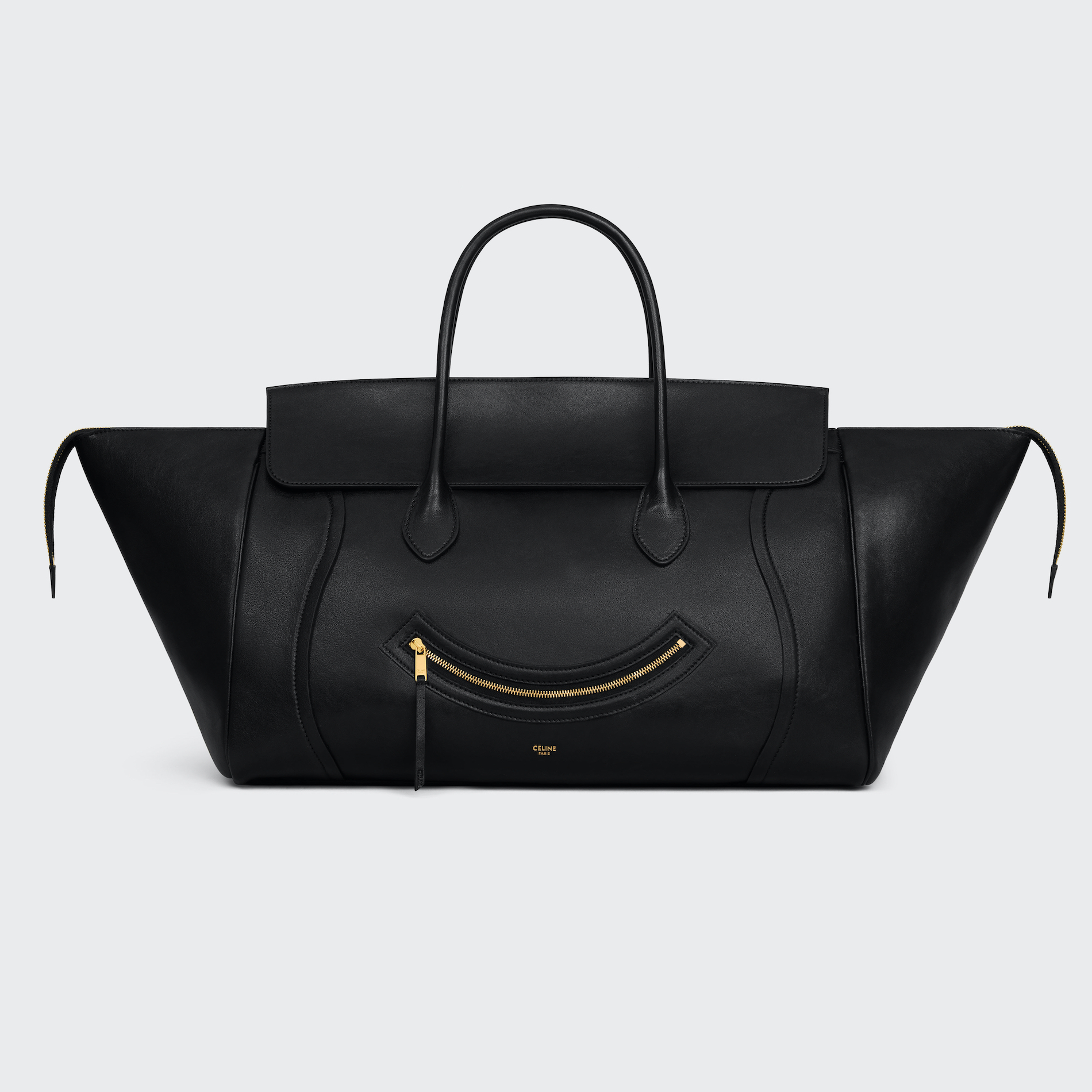 Originally introduced by Phoebe Philo in 2010, the Phantom Luggage swiftly became a design legend — its wavy contours a knowing nod to Céline Vipiana’s 1969 Mistral bag. Now, Rider reimagines that lineage for the present moment. The New Luggage arrives crafted in supple, shiny lambskin, chosen for its smooth hand and delicate sheen, finished with sewn-back edges that lend an easeful, rounded structure. Its signature front zip — offered in two expressions including the playful Smile Variation — brings a subtle modern wit to the house’s minimalist codes.