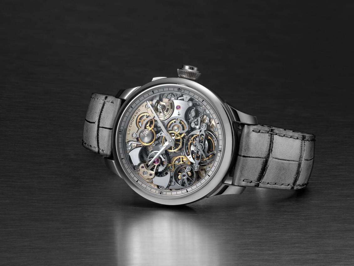 This exceptional chiming timepiece features a grande sonnerie and petite sonnerie alongside a minute repeater to represent the culmination of a decades-long journey initiated by Karl-Friedrich Scheufele. It serves as a testament to the cumulative impact of 30 years spent creating and innovating in the domain of fine watchmaking.