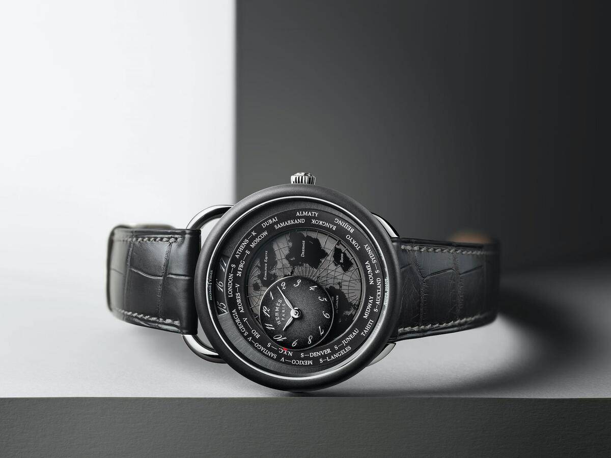 With the new Arceau Le temps voyageur timepiece, the Hermès journey continues towards new dreamlike horizons, where time takes on a singular dimension. Borders are blurred, movement is light and joyful. The hours of the world are an invitation to experience ubiquity – here or elsewhere – as the spirit takes flight, free and borne on the wings of dreams.