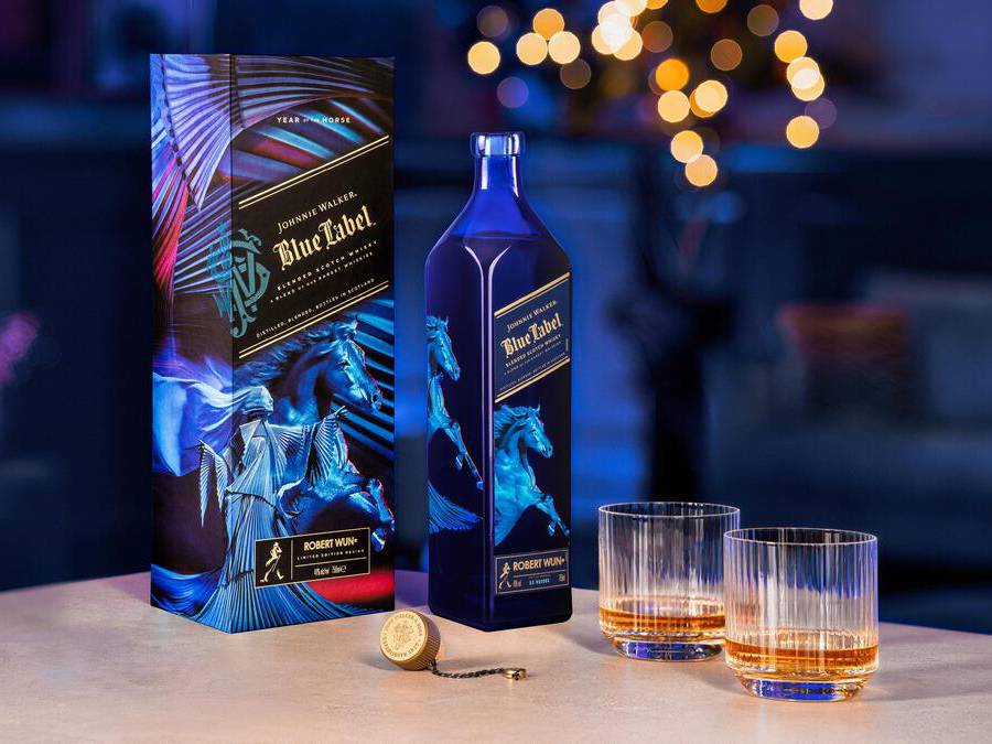 Luxury finds a new visual language as Johnnie Walker unveils its Blue Label Year of the Horse limited edition bottle design. For this Lunar New Year, the house has partnered with Robert Wun, the Hong Kong born and London based fashion designer celebrated for his surrealist vision and innovative approach to haute couture.