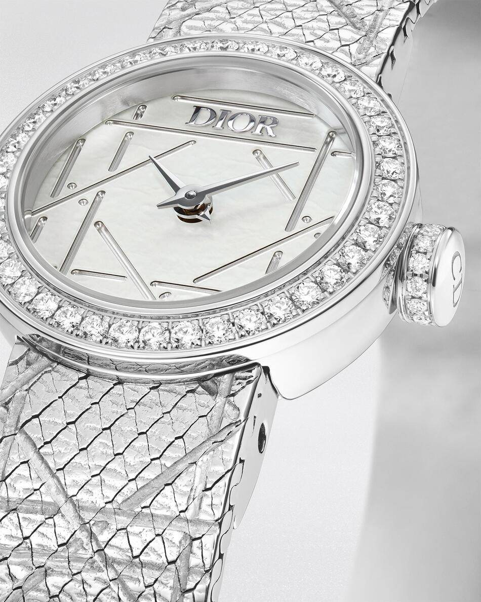 This emblematic timepiece is famously adorned with the geometric lines of the Cannage pattern. This signature code has been a fundamental part of the House’s visual language since the very first fashion show in 1947. Now, the La D My Dior undergoes a sophisticated refresh that brings this iconic geometry to life in a new, abstract form.