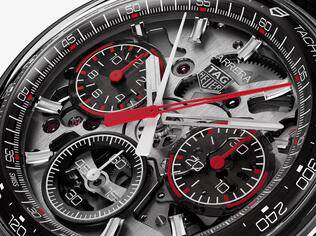 The TAG Heuer Carrera Plasma signature crown diamond is a single, 1.3-carat, pink, lab-grown diamond. It also comes with a new signature shape, with a Diamant d’Avant-Garde shield elegantly adorning the polycrystalline dial.