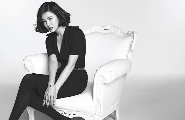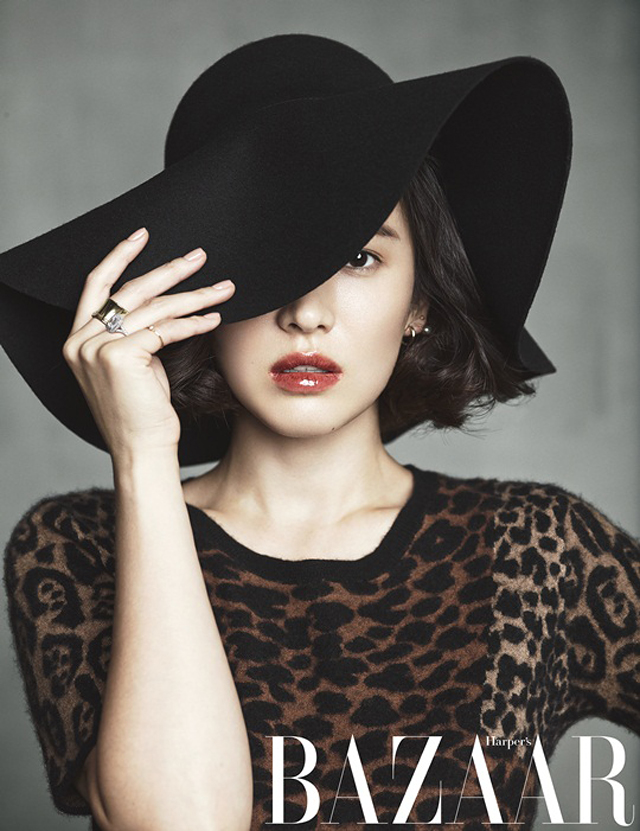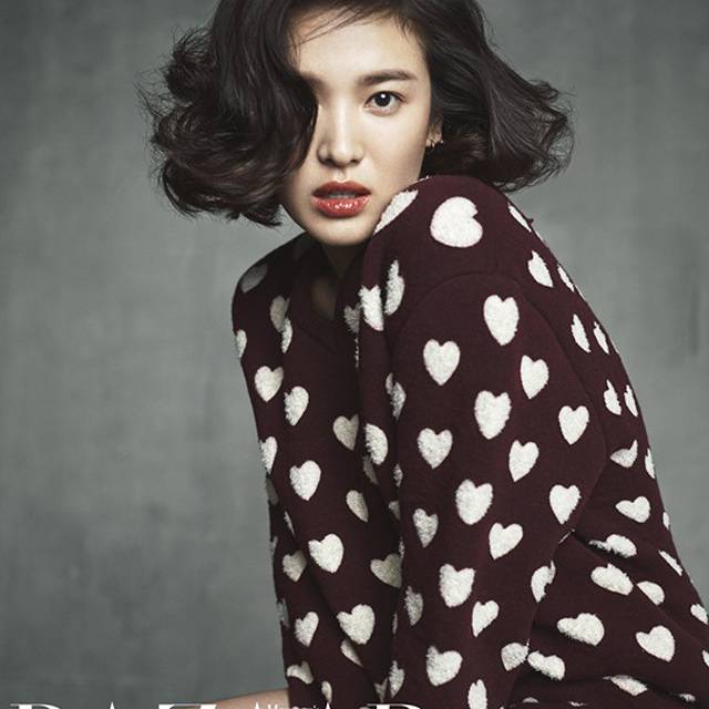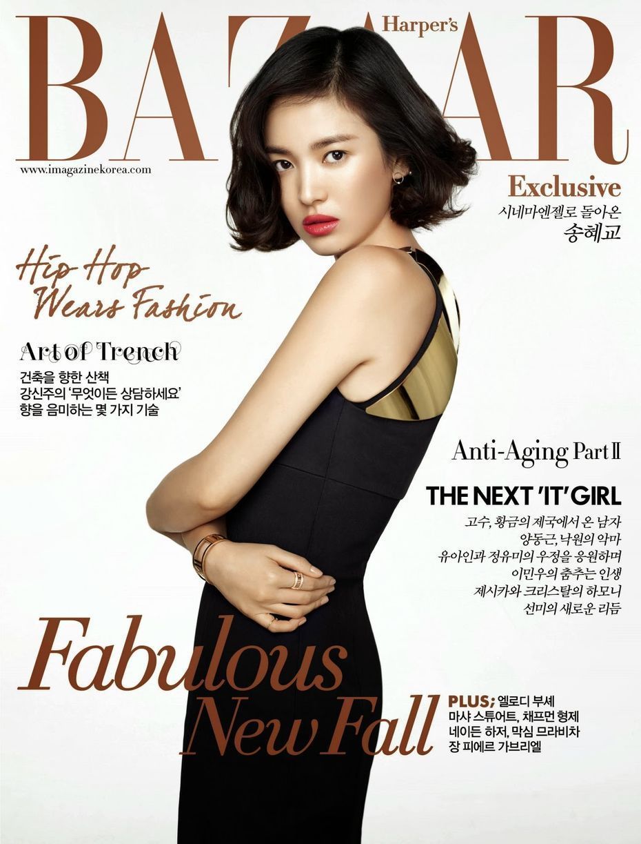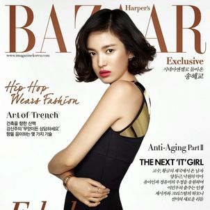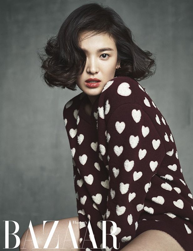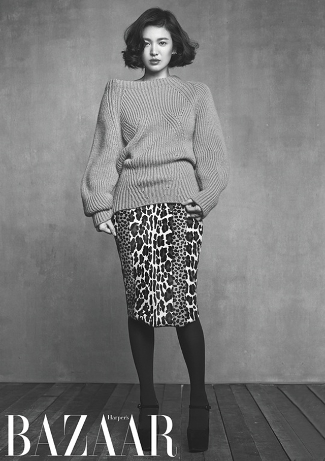Actress Song Hye Kyo covers the October issue of Harper's Bazaar Korea. Photographed by Kim Youngjun, the actress’ famous looks stand out against a white background, and inside, Song displays an edgy attitude and style while modeling several patterned knits from Burberry’s F/W 2013 collection.