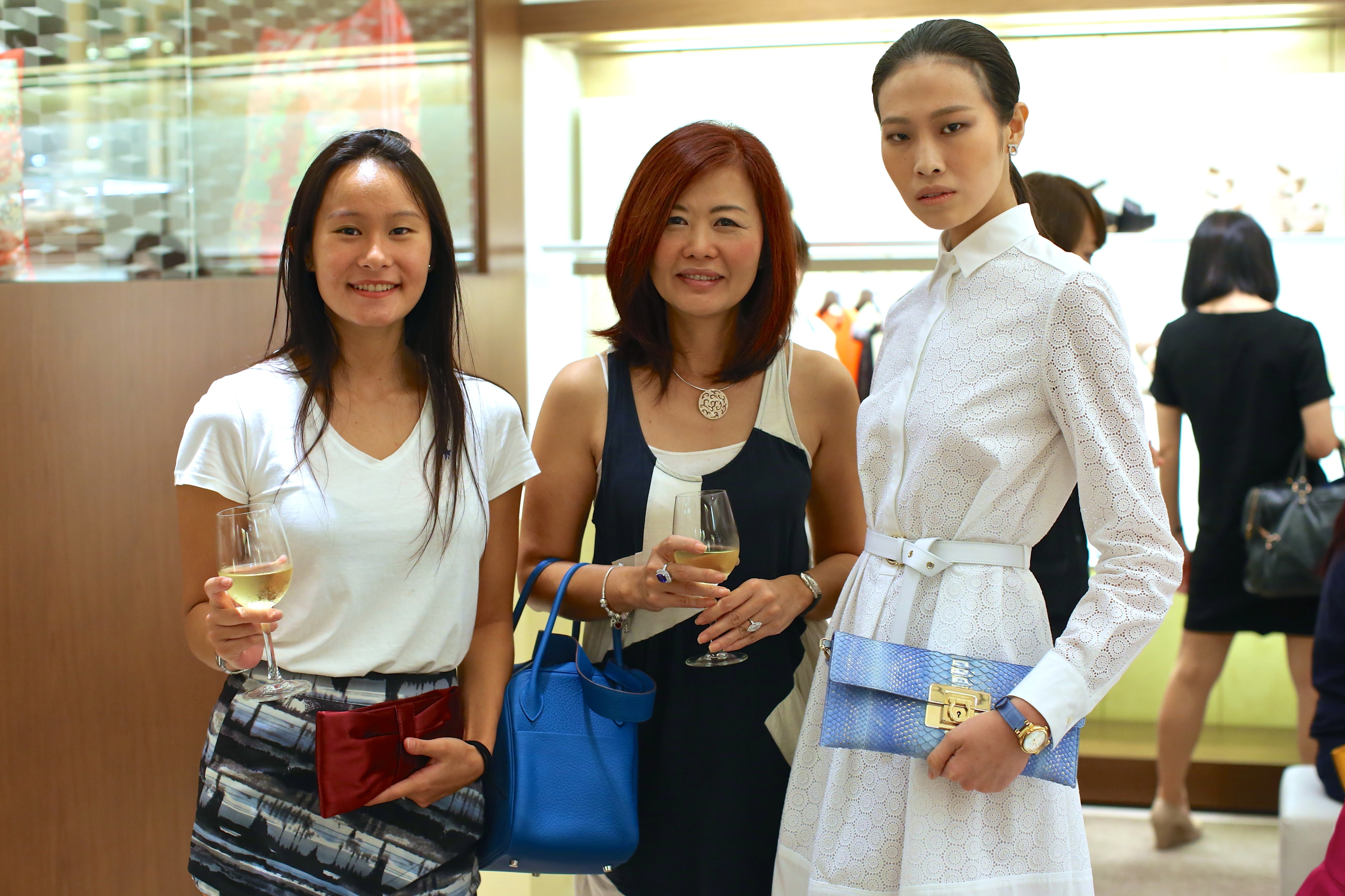 Salvatore Ferragamo hosted an exclusive preview of its Spring/Summer 2015 collection at its flagship store at The Paragon in Singapore. Guests included Adeline Yeo, Caroline Low-Heah, Frances Low and Nana Chua, were treated to a fashionable evening of fine Italian craftsmanship and style, along with a selection of exquisite handcrafted gourmet treats presented by award-winning pastry chef, Janice Wong of 2am:dessertbar.