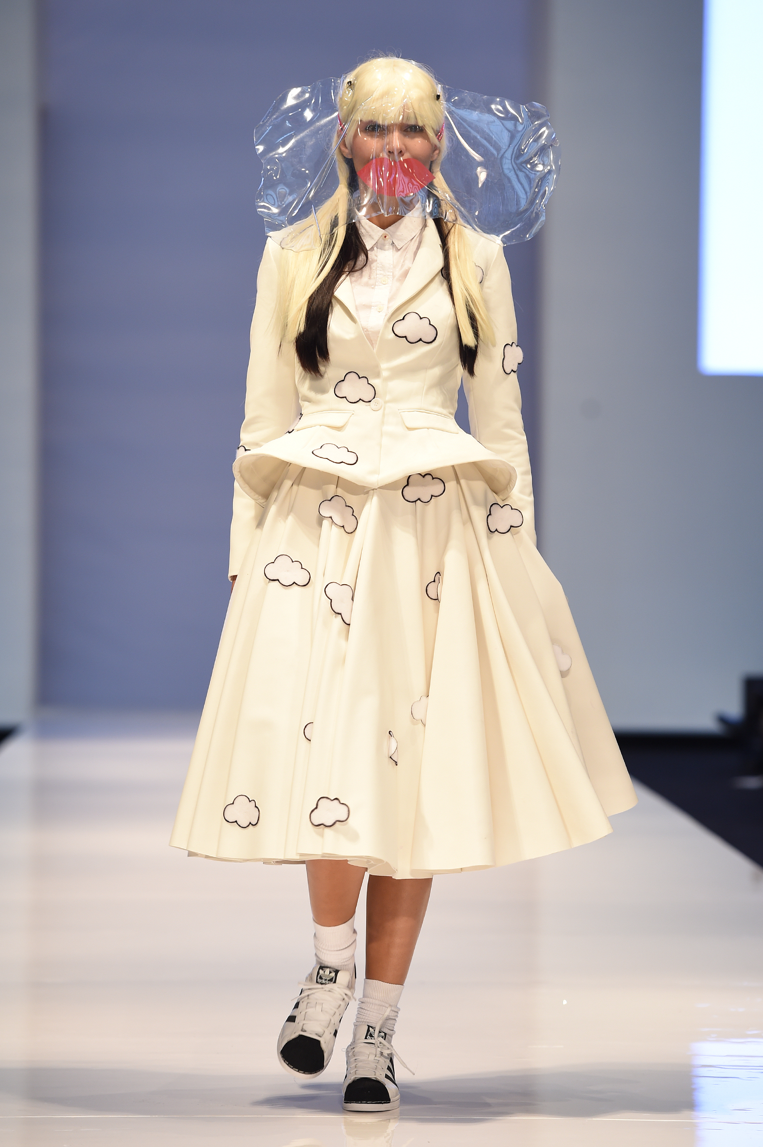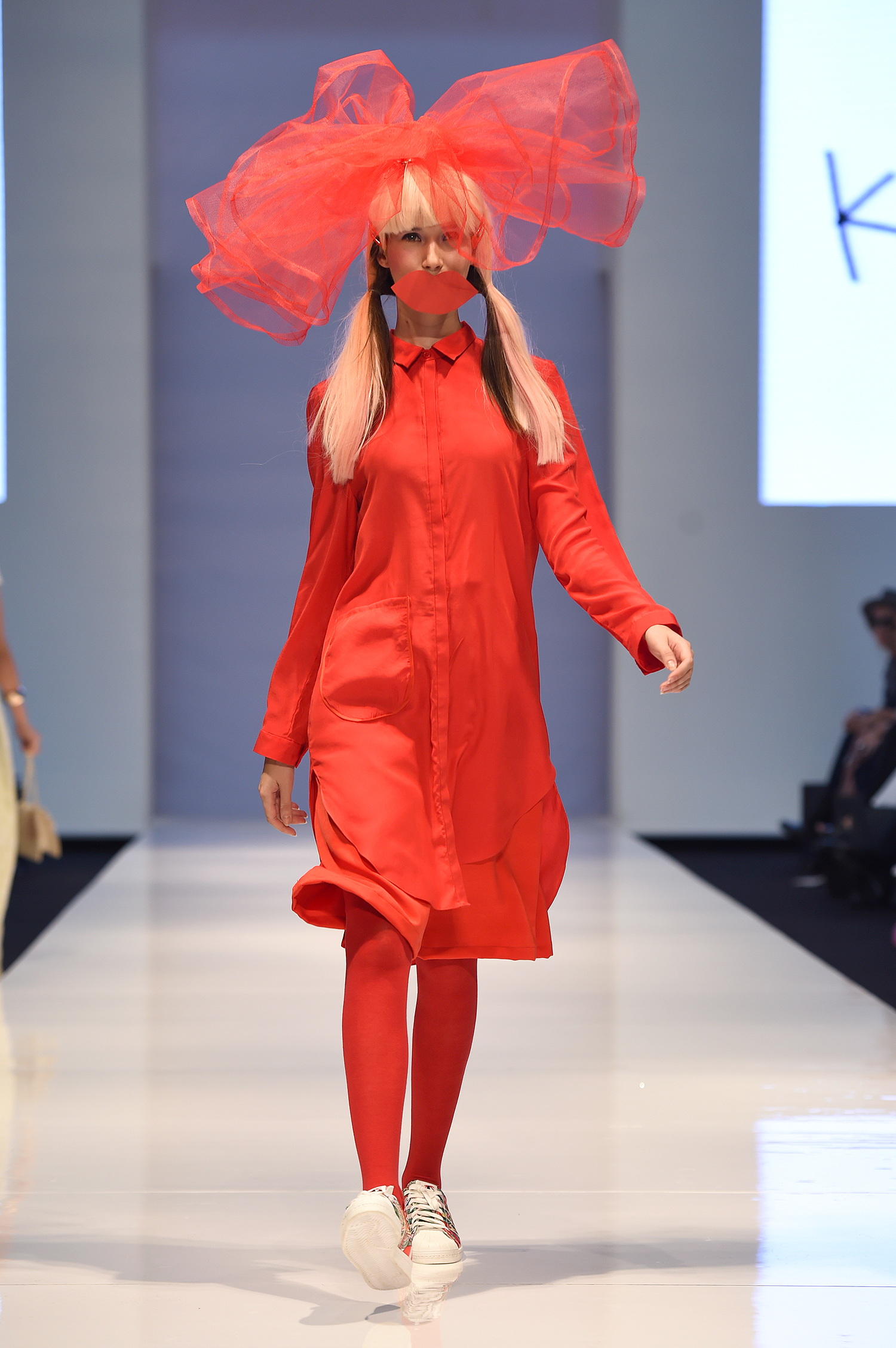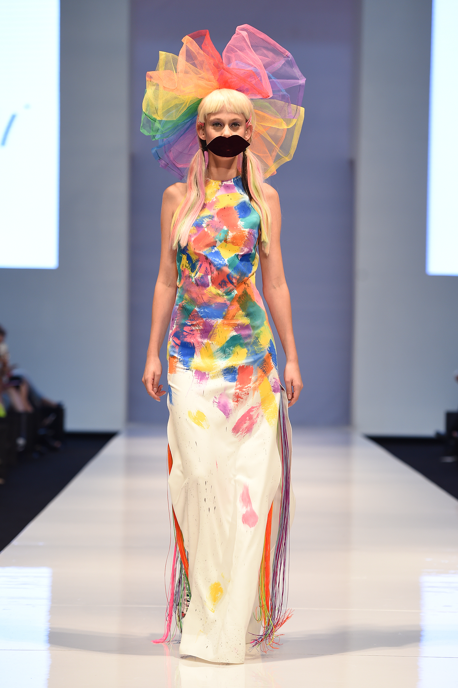 Malaysian designer Kittie Yiyi’s imagination never ceases to stimulate. She may be inspired by colour, texture, image of anything that she finds stimulating. A story then slowly develops, and that results in a final collection. For her spring-summer 2016 collection, presented during Kuala Lumpur Fashion Week Ready To Wear 2015, she infused whimsical touches and compositions which reflected the upbeat mood of youthful generation. The celebration of youth culture has been integral to the establishment of the Kittie’s aesthetic. She sent a quirky trench coat in clear plastic embellished with cartoon figures down the runway. Hand-painted dress with vibrant colour palette, a pop-up unicorn on an oversized jumper, fringe dress and hoodie punctuated with playful patterns that challenged contemporary fashion.