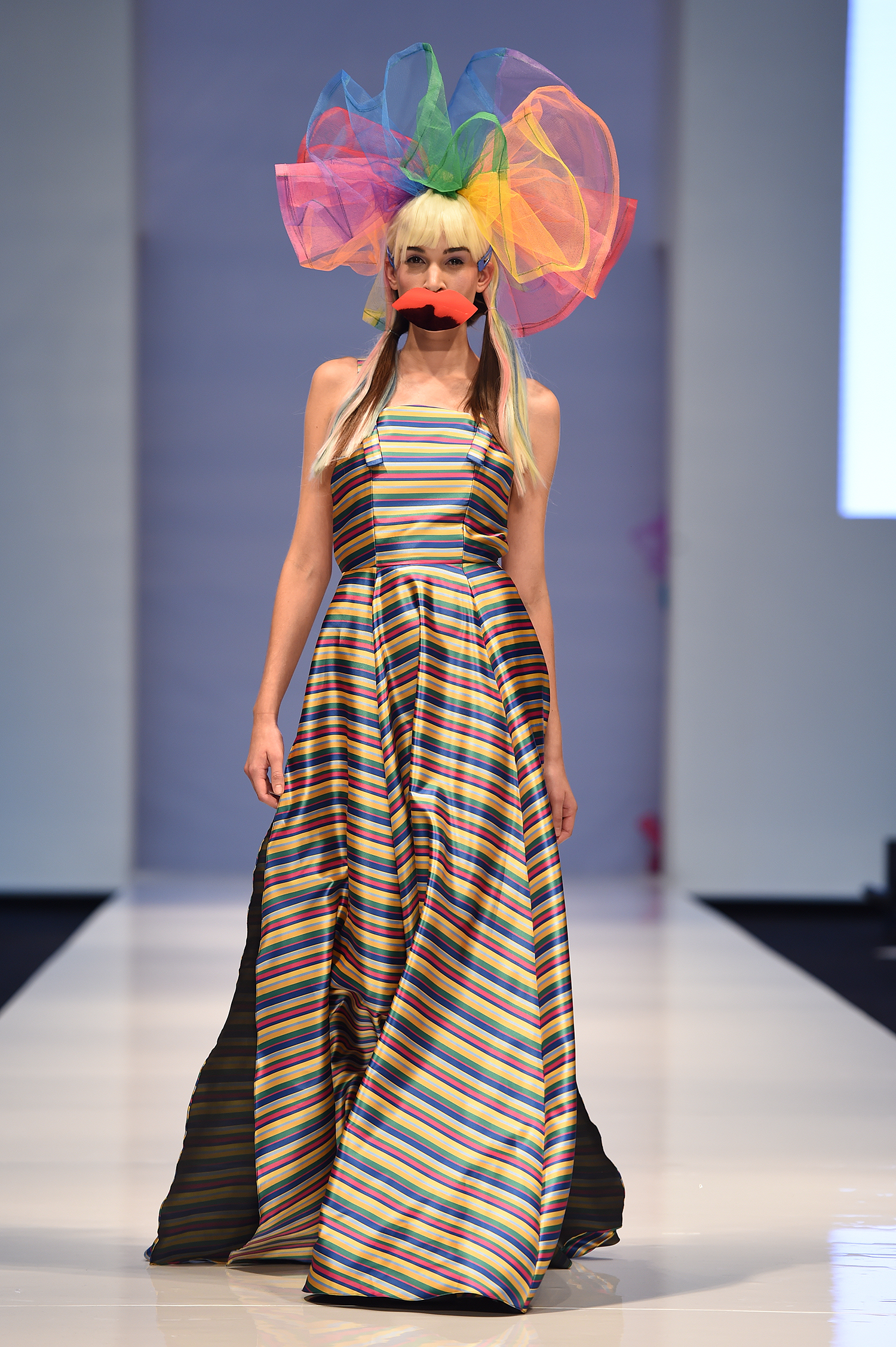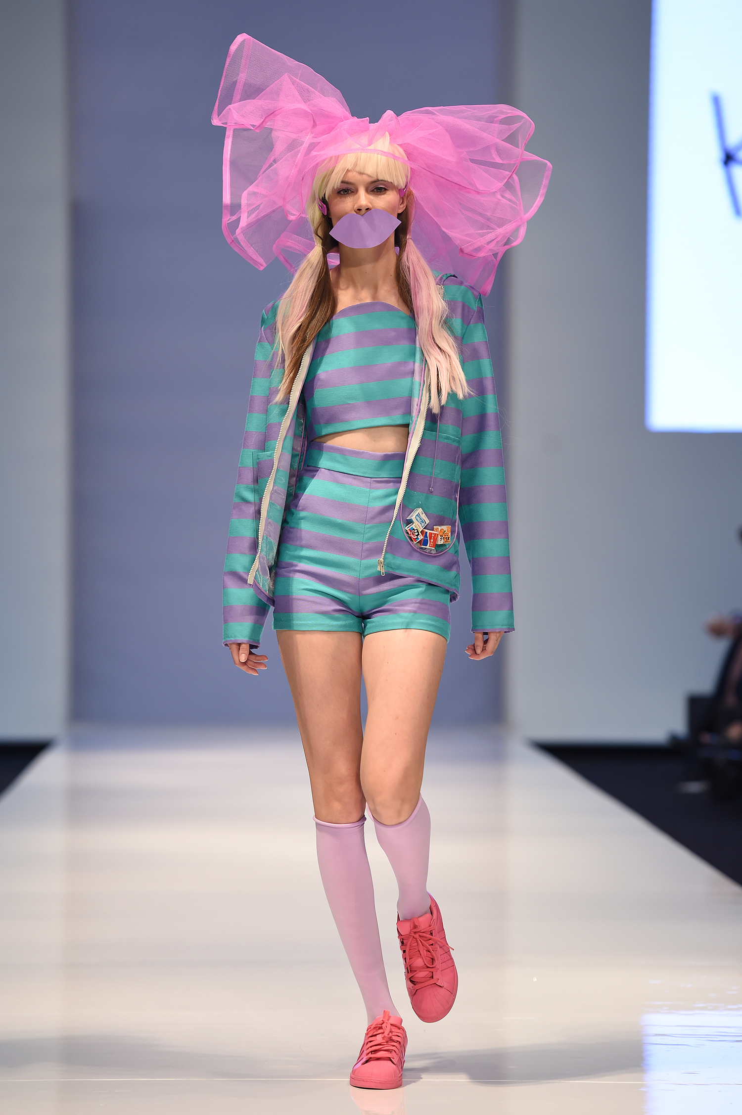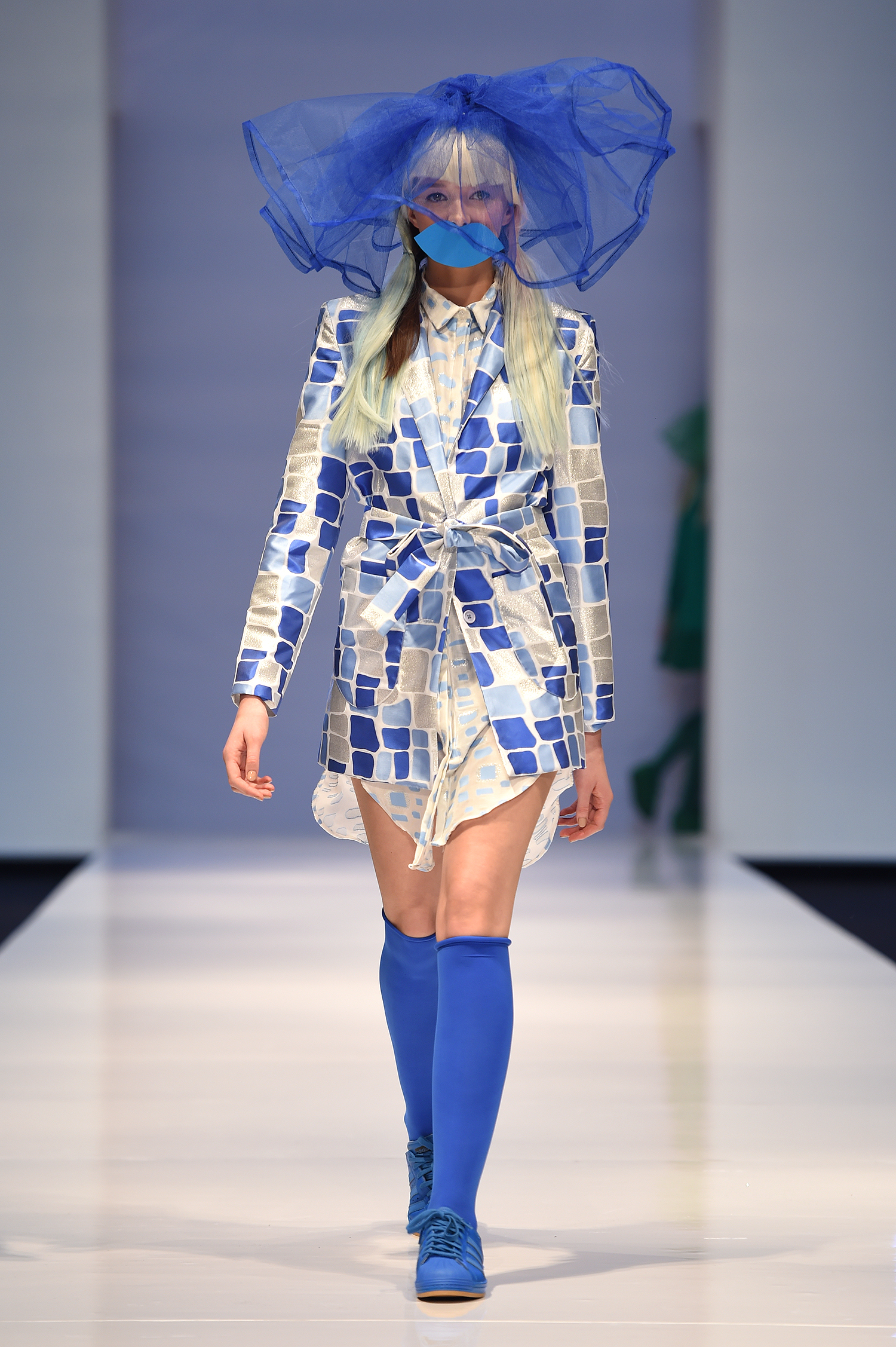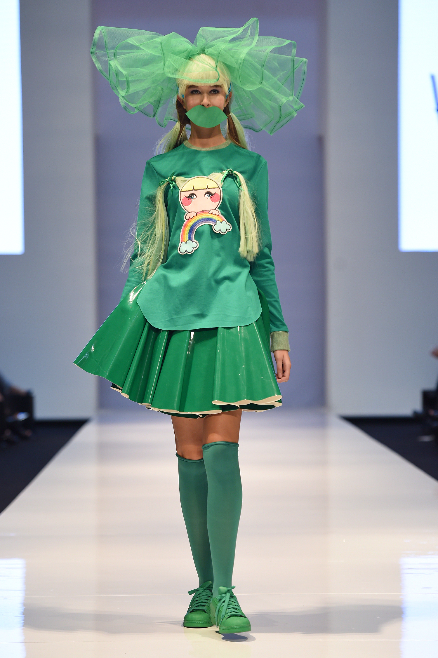 Malaysian designer Kittie Yiyi’s imagination never ceases to stimulate. She may be inspired by colour, texture, image of anything that she finds stimulating. A story then slowly develops, and that results in a final collection. For her spring-summer 2016 collection, presented during Kuala Lumpur Fashion Week Ready To Wear 2015, she infused whimsical touches and compositions which reflected the upbeat mood of youthful generation. The celebration of youth culture has been integral to the establishment of the Kittie’s aesthetic. She sent a quirky trench coat in clear plastic embellished with cartoon figures down the runway. Hand-painted dress with vibrant colour palette, a pop-up unicorn on an oversized jumper, fringe dress and hoodie punctuated with playful patterns that challenged contemporary fashion.