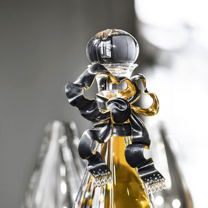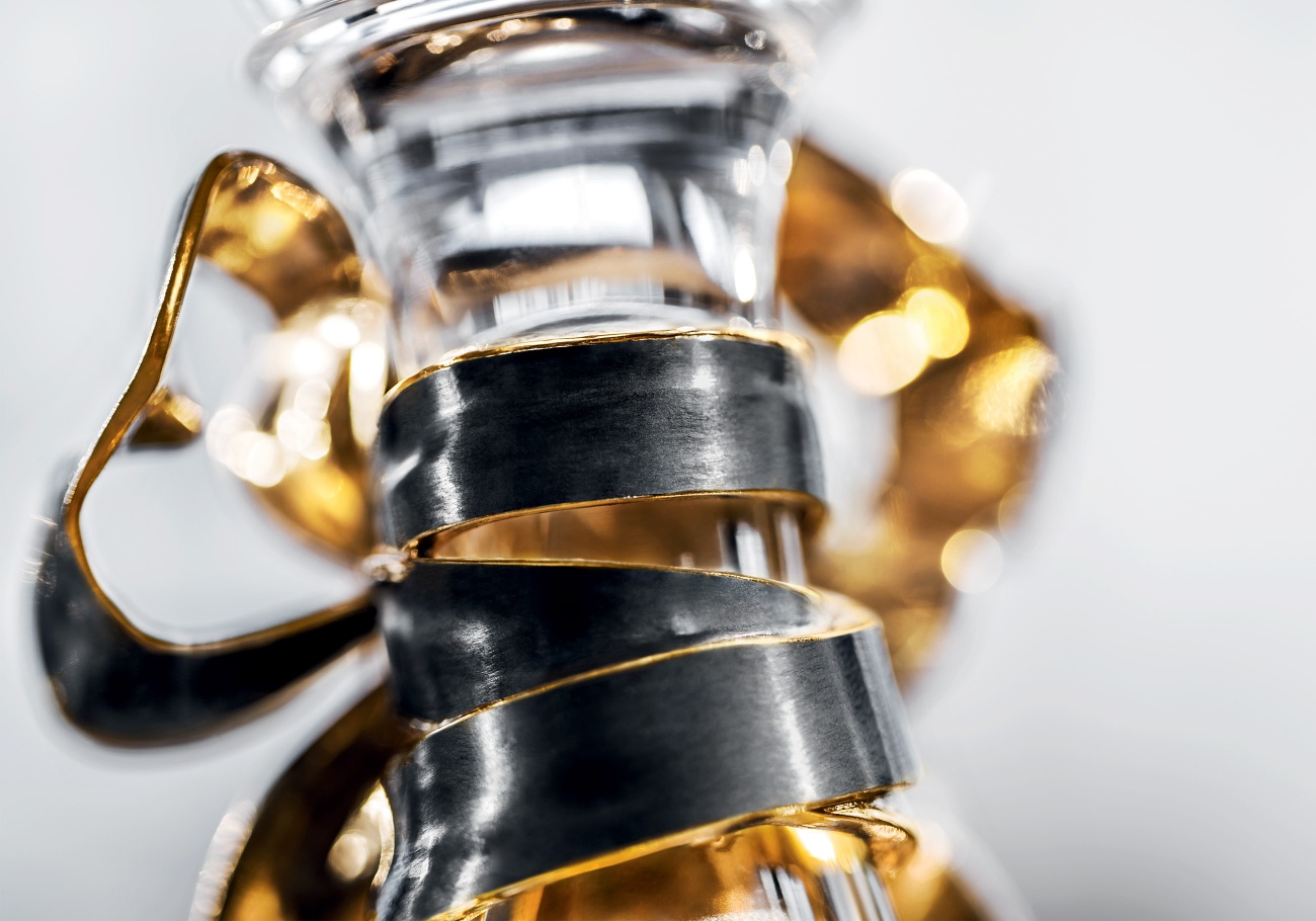 The ribbon decorating the amphora is produced using a technique whereby a layer of silver is placed over a layer of rose gold. The two metals are worked separately then bonded together before being dipped into an oxidizing bath that blackens the silver while preserving the rose gold. This gives a jewel an antique look and reproduces a cradle-lit effect. As if frozen in movement, the bow requires precise and meticulous manipulation by the craftspeople, from polishing to stone setting. Each crystal amphora is mouth-blown by the master glassblowers at Baccarat, perpetuating the close links the House has enjoyed with this prestigious crystal glassmaker since 1947.