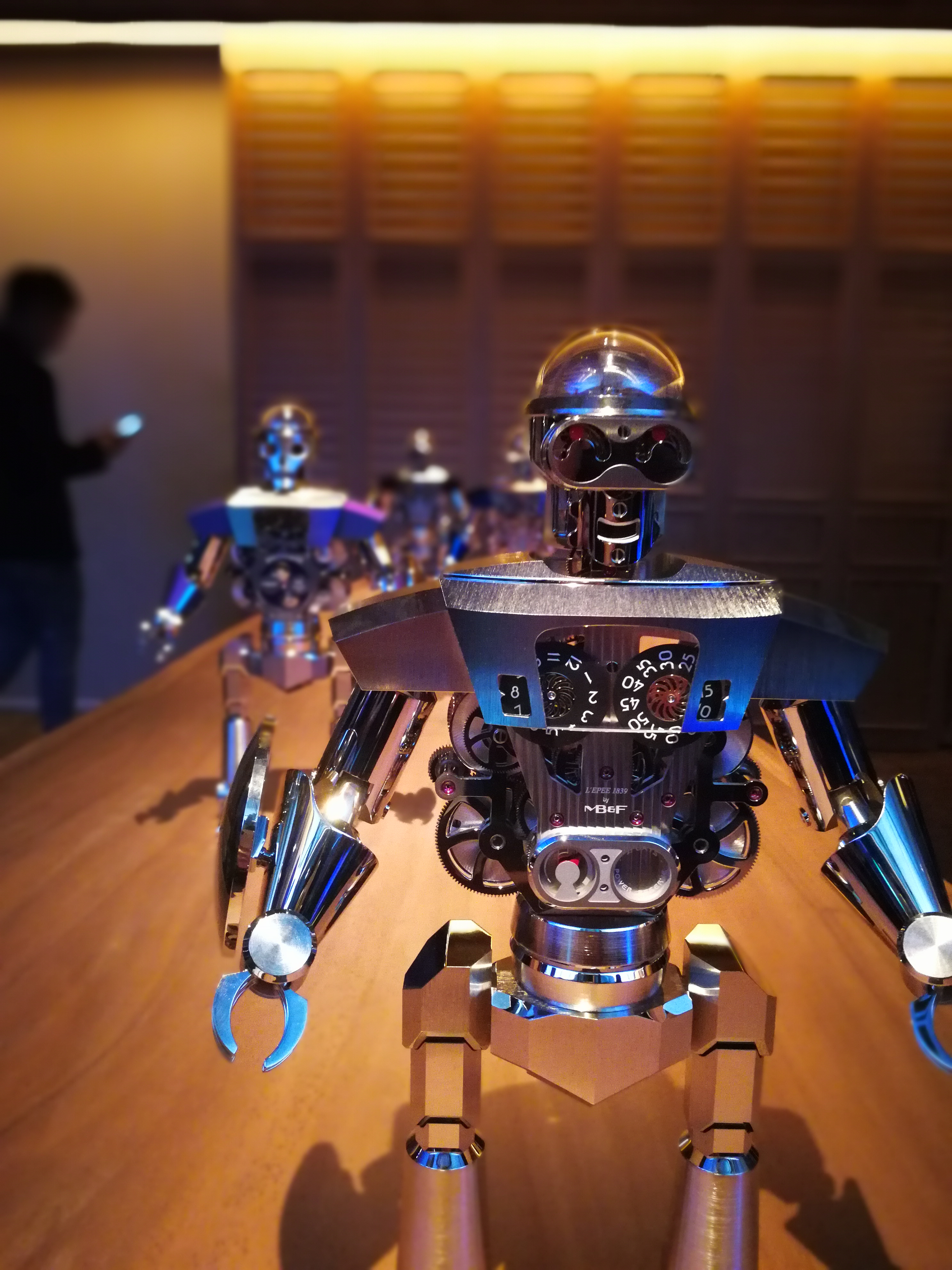 Light side: boasting 35 days of power reserve, Balthazar's clockwork displays "slow" jumping hours and sweeping minutes via two discs on the chest, while the power reserve is indicated on his belly. His red eyes, which continually scan the surroundings, are actually 20-second retrograde displays.