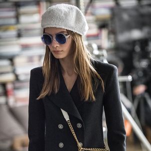 Styles from the Sixties also were a key element in the relaxed 87-piece collection. White berets met sexy exposed midriffs, miniskirts and loose white sweaters that were cut with a retro bateau collar. Mary Janes — one-strap shoes — were also given a cool reworking in silver and white, and some had rubber soles.