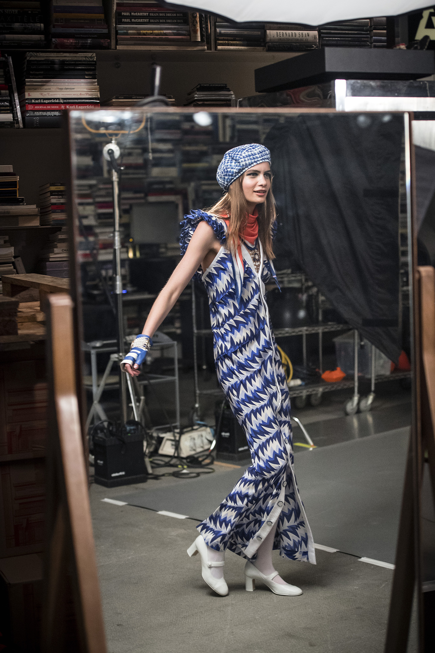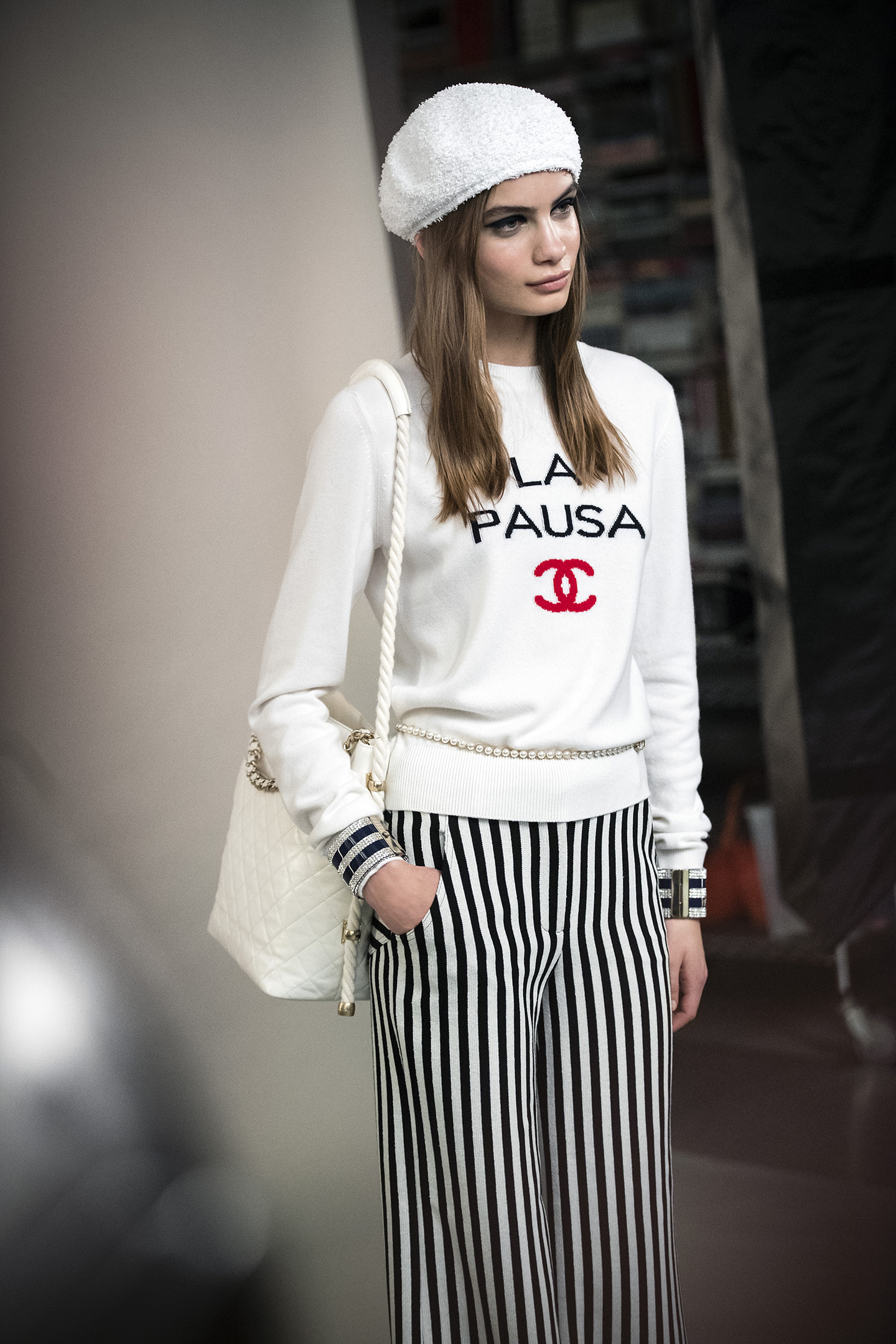 A mock cruise liner was constructed within the Grand Palais in Paris for CHANEL's Cruise 2018/19 presentation. The ship, ‘La Pausa’, was named after Gabrielle Chanel’s summer house on the French Riviera.