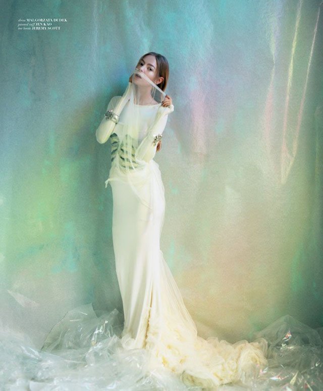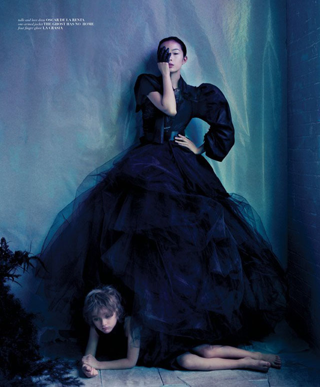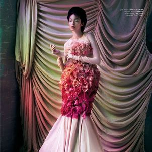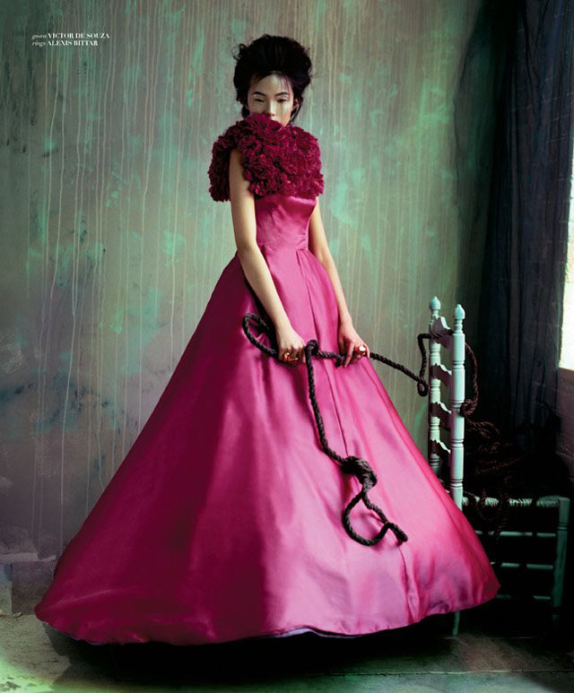 Photographed by Jeff Bark and styled by Holly Su Angray, model Xiao Wen sports the latest evening gowns for the May edition of Bullet magazine.