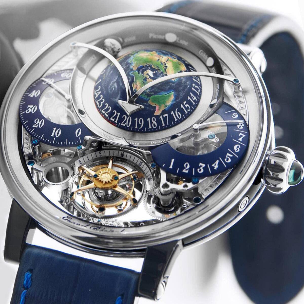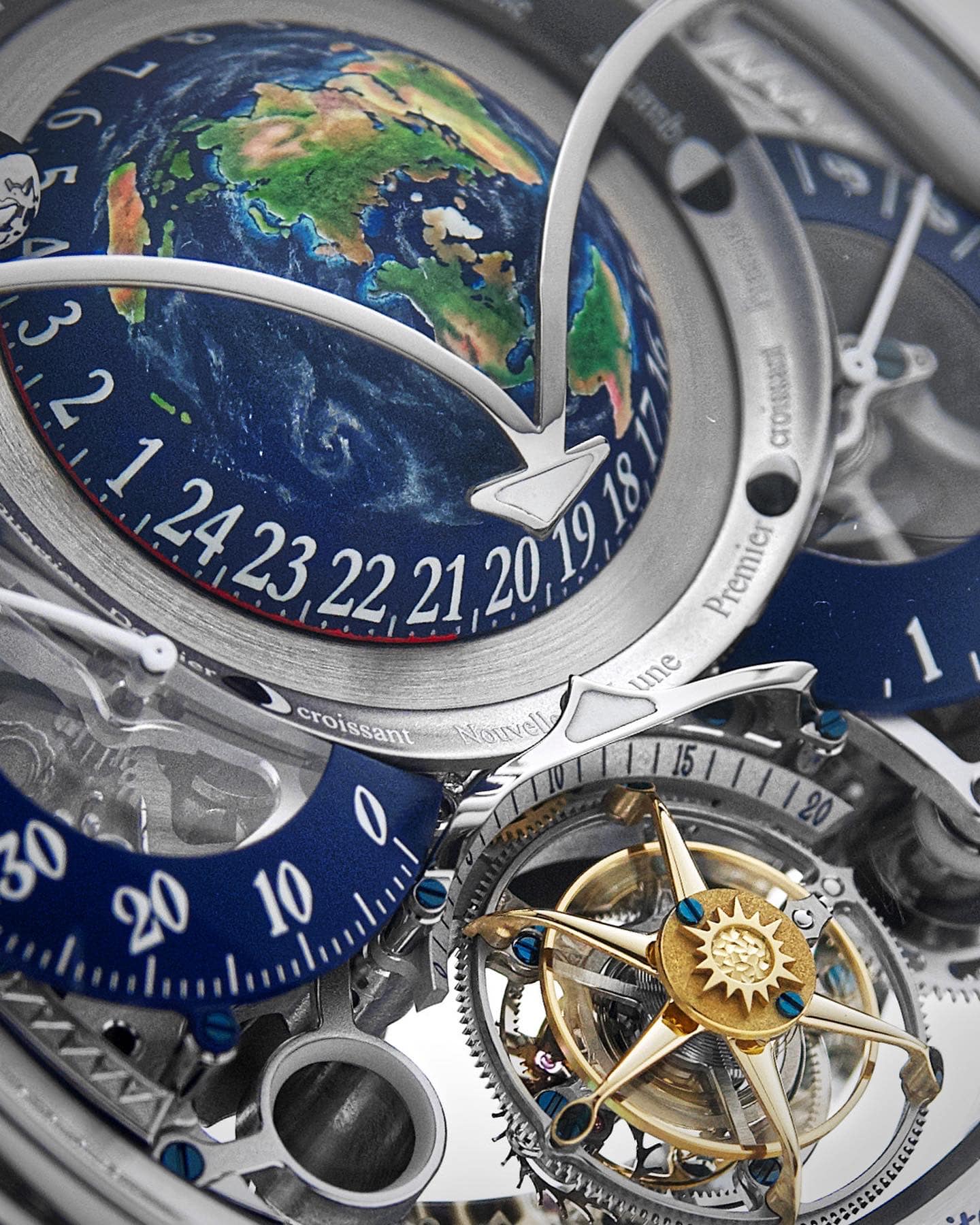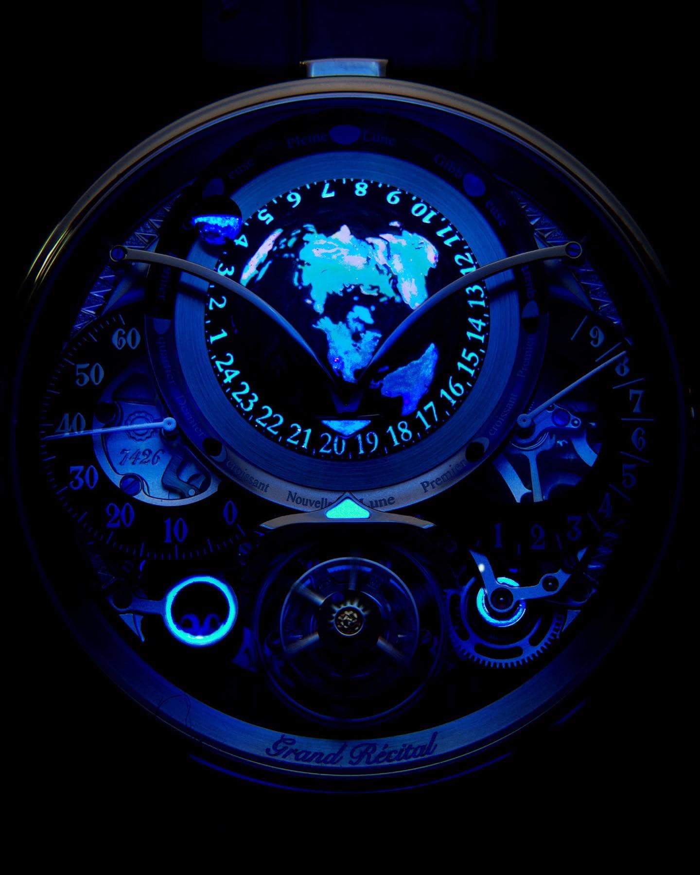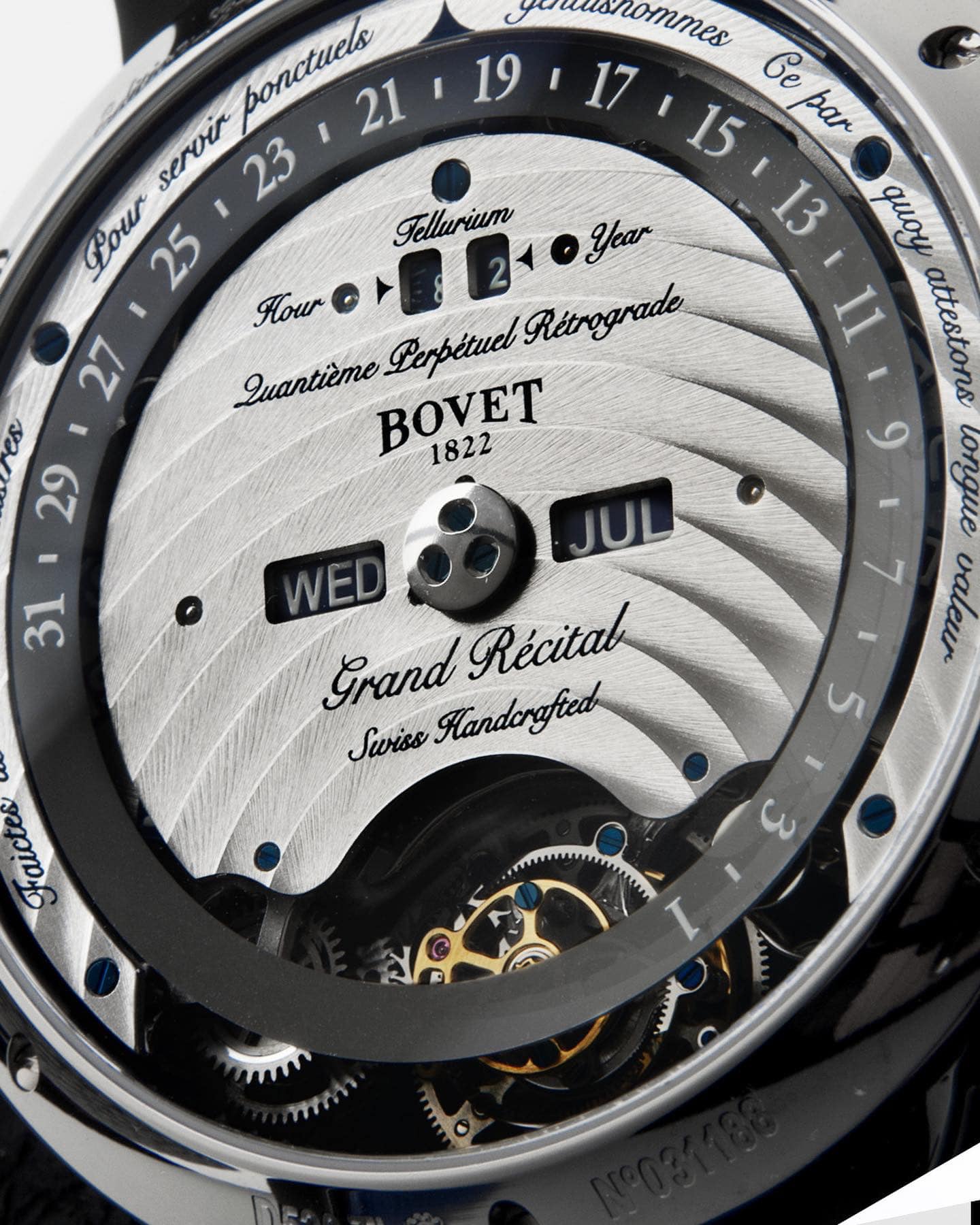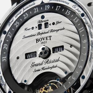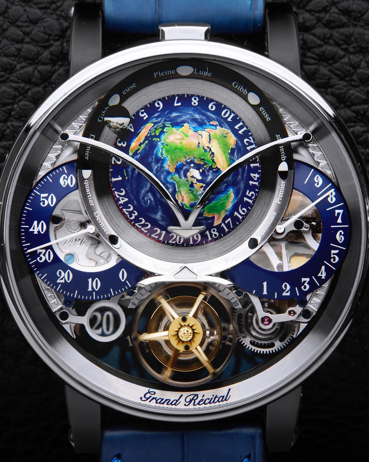 The Récital 22 Grand Récital tourbillon forms the third chapter in the poetic watchmaking narrative now known as the BOVET Trilogy. The exceptional timepiece nvites you to observe the three heavenly bodies that set the pace of our lives: the sun, earth, and moon.