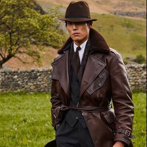 A detachable shearling collar and burnished treatment adapt the Keating Trench into the Fall 2022 world.