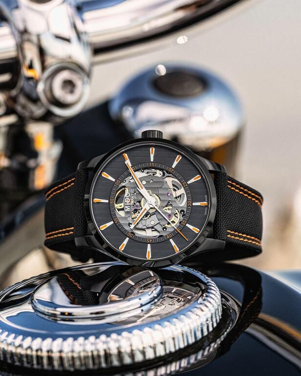 With its assertive aesthetics and visible mechanism, the Multifort Skeleton Vertigo Swiss Watch takes a bold stance. In a true stylistic and technological achievement, Mido showcases the heart of its automatic movement by revealing its finely skeletonised plate.