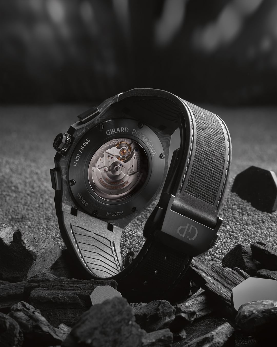 Crafted with cutting-edge 8Tech, the Girard-Perregaux Laureato Absolute 8Tech pushes the boundaries of watchmaking. Its octagonal case, formed from layers of carbon fiber and titanium, boasts a captivating, random structural pattern. This technological marvel is a testament to Girard-Perregaux's mastery of avant-garde materials.