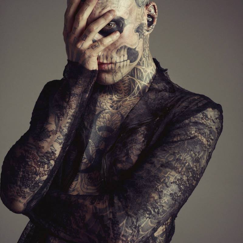 Photographed by Mateusz Stankiewicz for Fashion Magazine, model Rick Genest cuts a figure of shock styled by Aneta Kostrzewa.