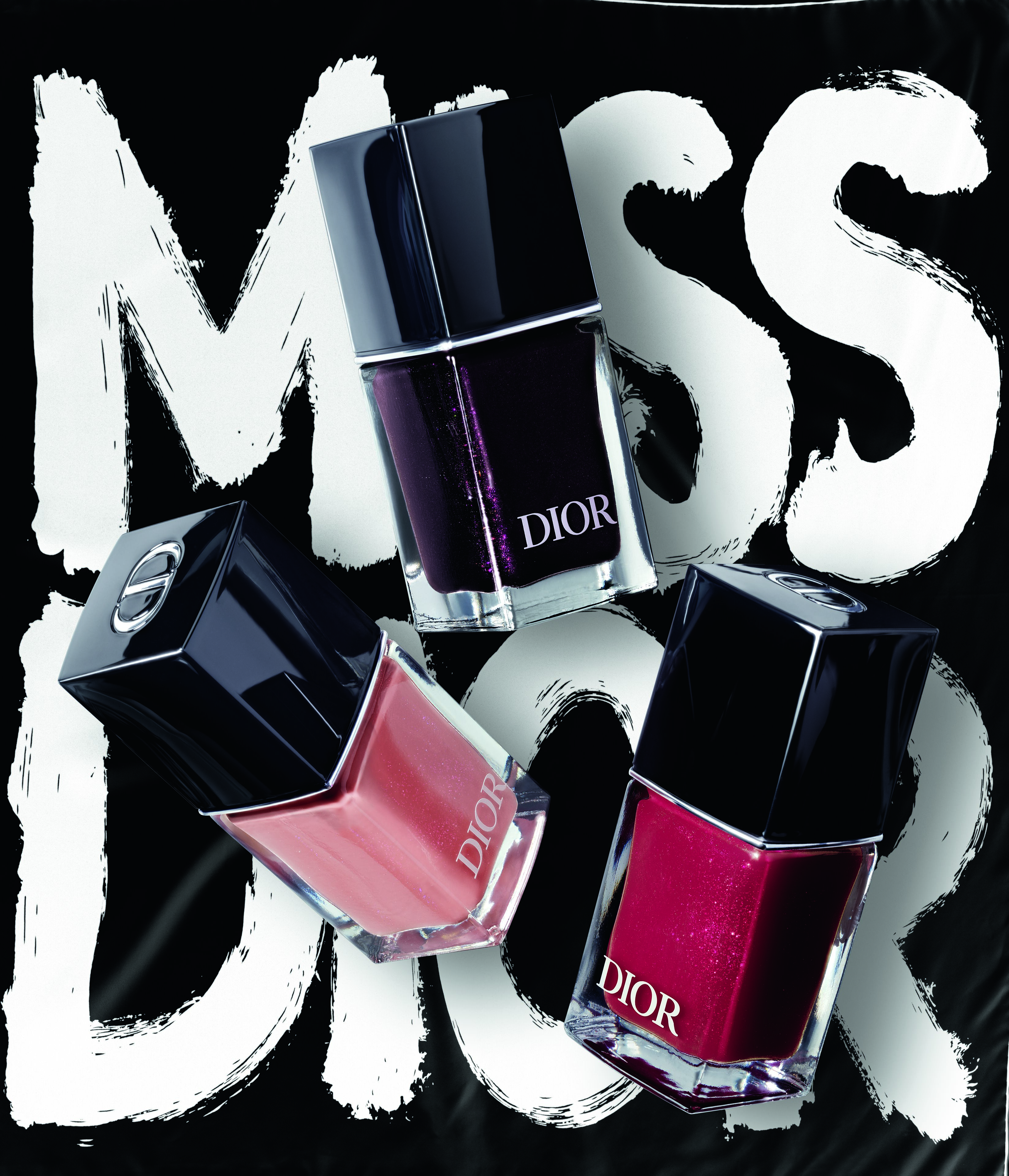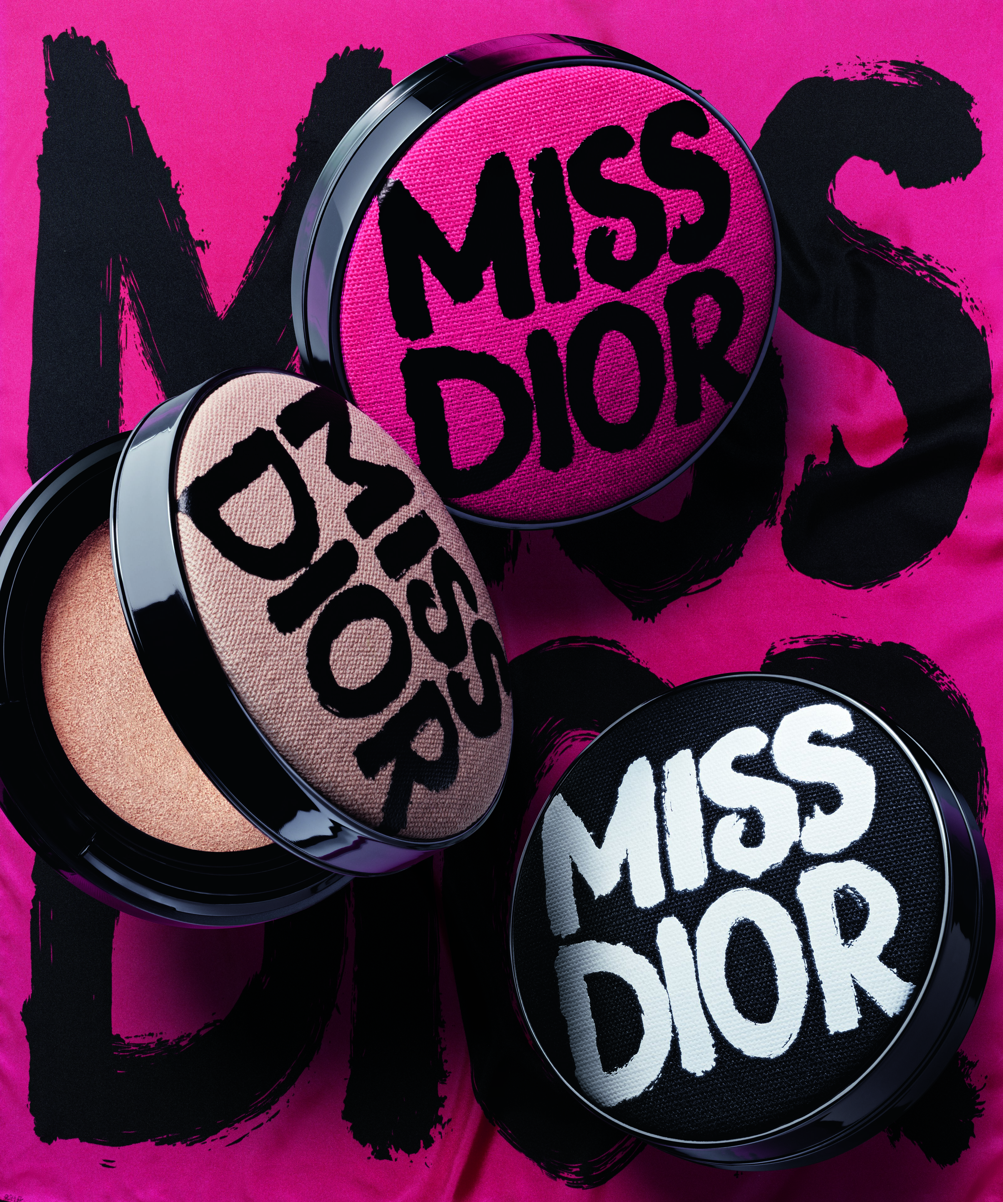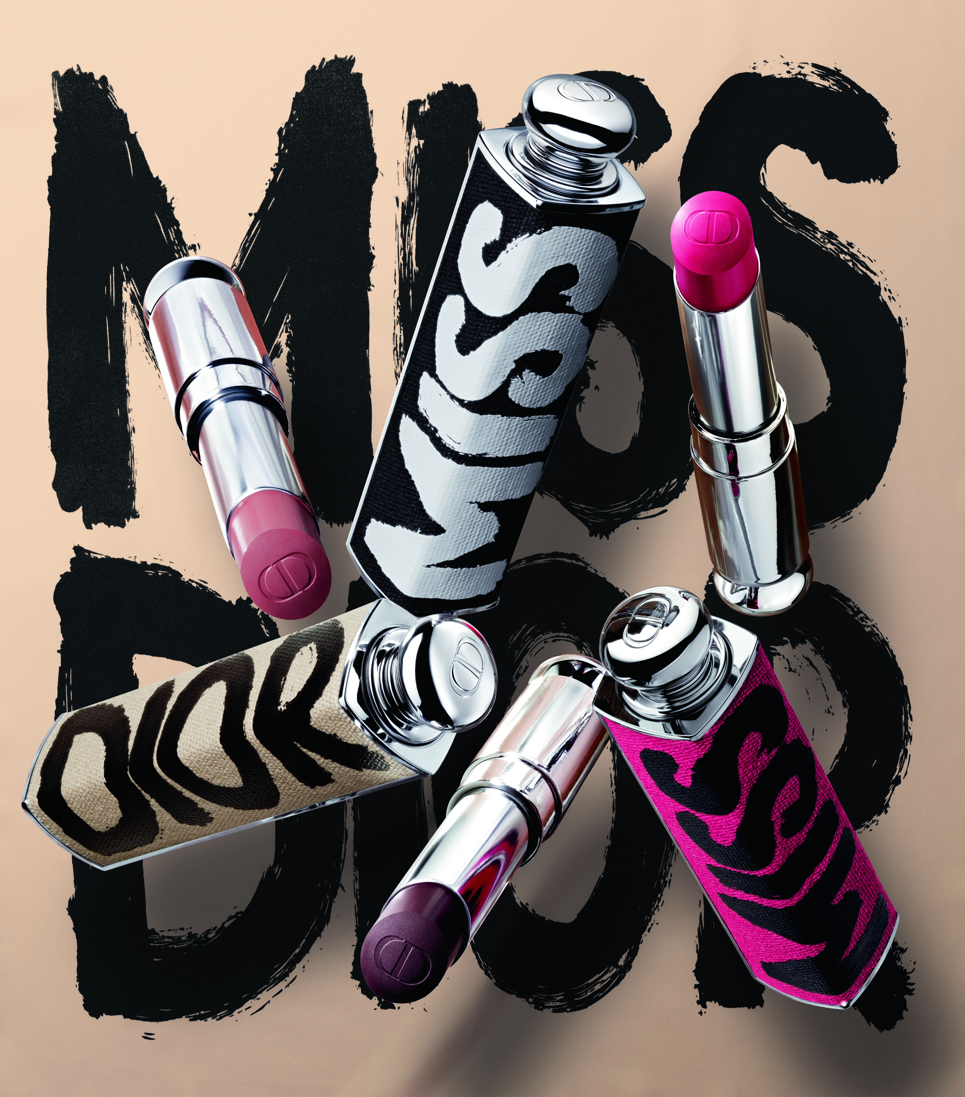Lips play their own drama: Dior Addict debuts limited-edition cases dressed in graffiti, alongside the daring new shade 790 Bold Black, while Rouge Dior bullets become slogans engraved in color, spanning electrifying pink to iconic nude. Skin and nails join the revolution with Forever Cushion cases and Dior Vernis lacquers, each drenched in the pop spirit of the season.