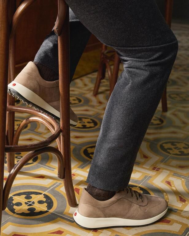 Designed for those who move seamlessly between boardrooms and boulevards, Red Dot embodies the essence of versatility. Each pair is a study in balance: the supple leather upper moulds to the foot with quiet sophistication, while the ultra-light sole and elastic lacing ensure effortless comfort. Subtle yet instantly recognisable, the small red mark at the heel becomes its signature—an emblem of identity and belonging.