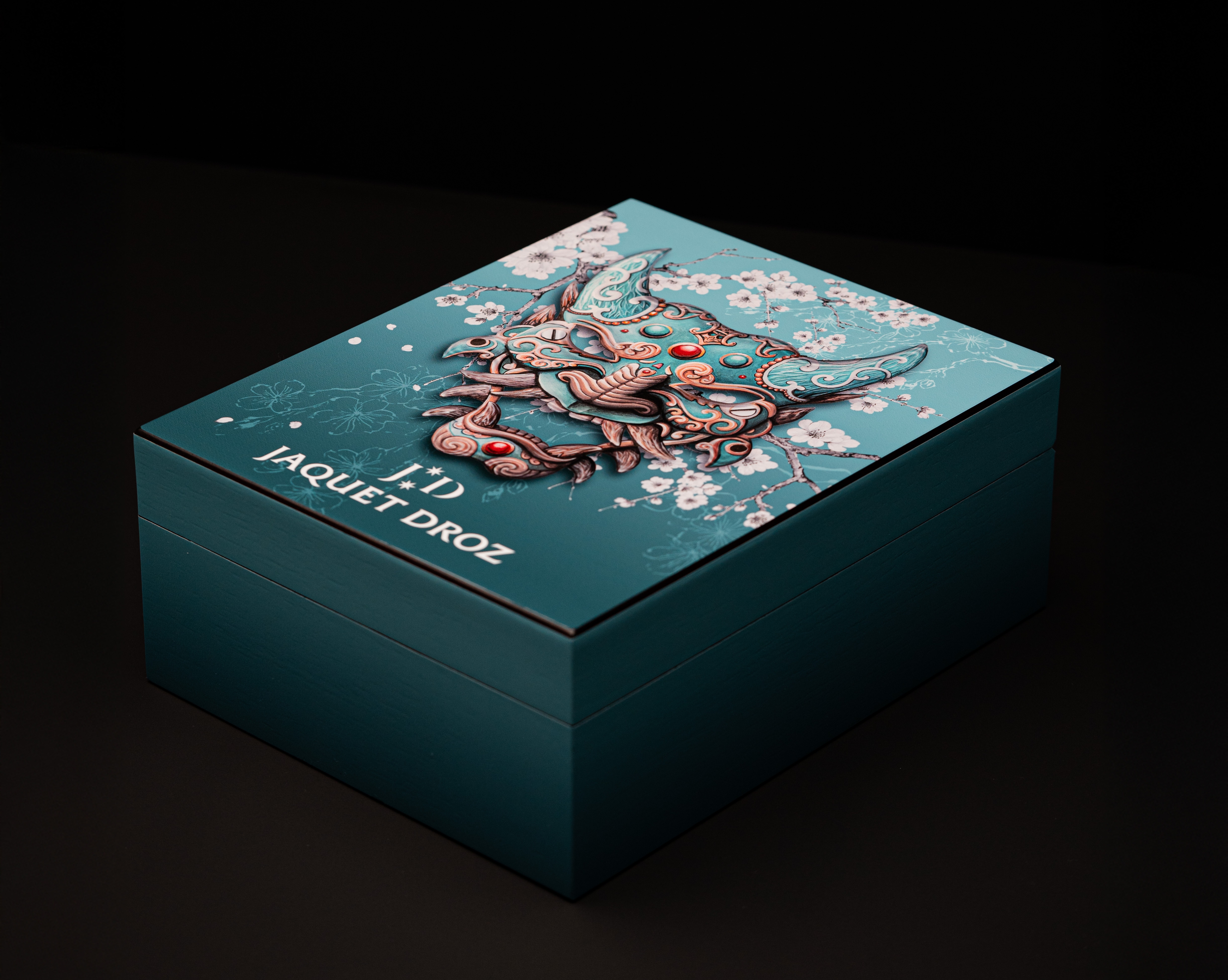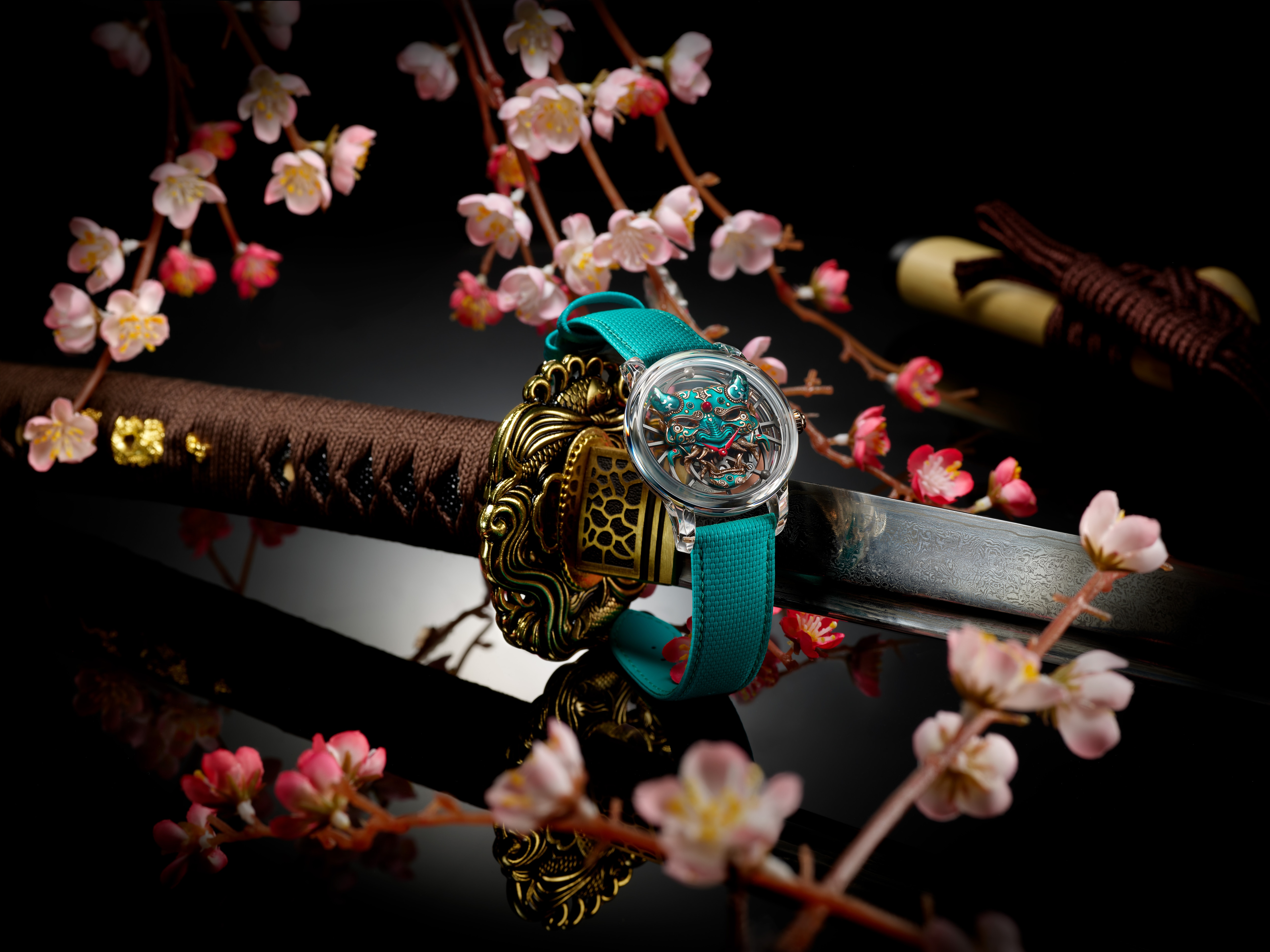 It has been a full decade since Jaquet Droz first turned its artistic gaze toward the rich heritage of Japanese arts. Now the Swiss maison revisits this profound theme with an exceptional creation that takes the mask of the Japanese warrior as its central motif. This unique piece is known as the Tourbillon Skelet Sapphire Bushido and represents a respectful yet free interpretation of ancient shapes and colors that required more than 200 hours of work to bring to life.