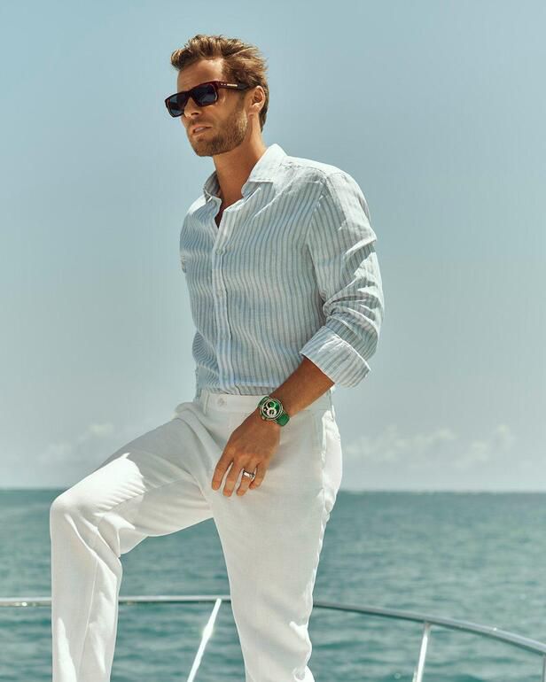 The House of Harry Winston has long understood that true glamour is never quiet, and the new Ocean Date Moon Phase Baguette Automatic 42mm serves as a vibrant testament to this philosophy. This timepiece dazzles with a dial finished in a captivating green sunray, a shade that evokes the lushness of a secret garden while maintaining the aquatic spirit of the collection. The verdant hue serves as the perfect backdrop for the baguette-cut gemstones that embellish the design, transforming a functional object into a display of structural brilliance.