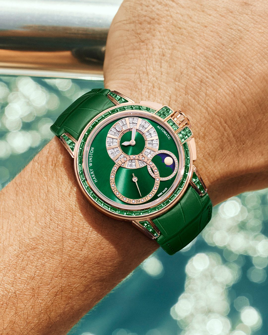 Harry Winston unveils a verdant vision of luxury with the Ocean Date Moon Phase Baguette Automatic | SENATUS