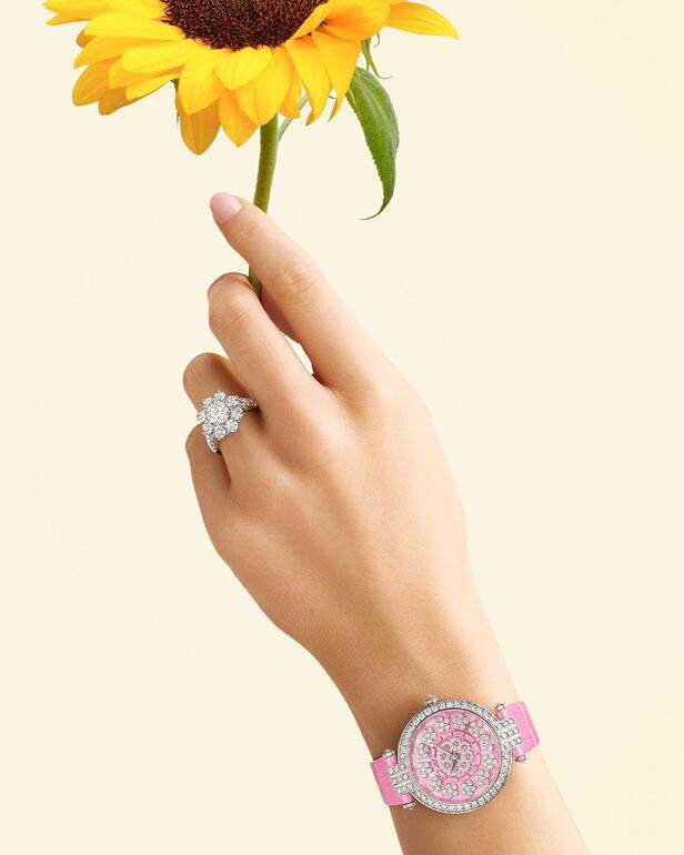 The House of Harry Winston has long been celebrated as a curator of brilliance, and this legacy shines with renewed vigor in the Premier Sunflower Automatic 36mm. This timepiece serves as a love letter to the natural world by uniting the precise mechanics of fine watchmaking with the floral exuberance of the iconic Sunflower motif. The dial creates a vision of eternal summer where the soft iridescence of pink mother-of-pearl blooms against the cool and sophisticated luster of white gold.