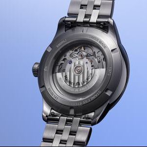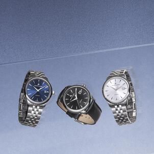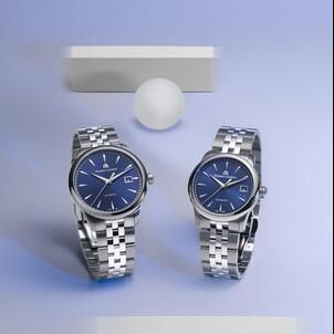 The 1975 Automatic arrives in a choice of 36 mm or 40 mm case sizes to unite vintage aesthetics with mechanical know-how. The brand also offers the aptly named 1975 Quartz in a 39 mm case for those who prefer the ease of a battery-powered movement. All models are available in a choice of three sophisticated dial colors including blue, black, or silver. Classic dauphine-style hands collaborate with hand-applied trapeze-shaped hour markers to indicate the time against a sunbrushed motif that wonderfully toys with the light.