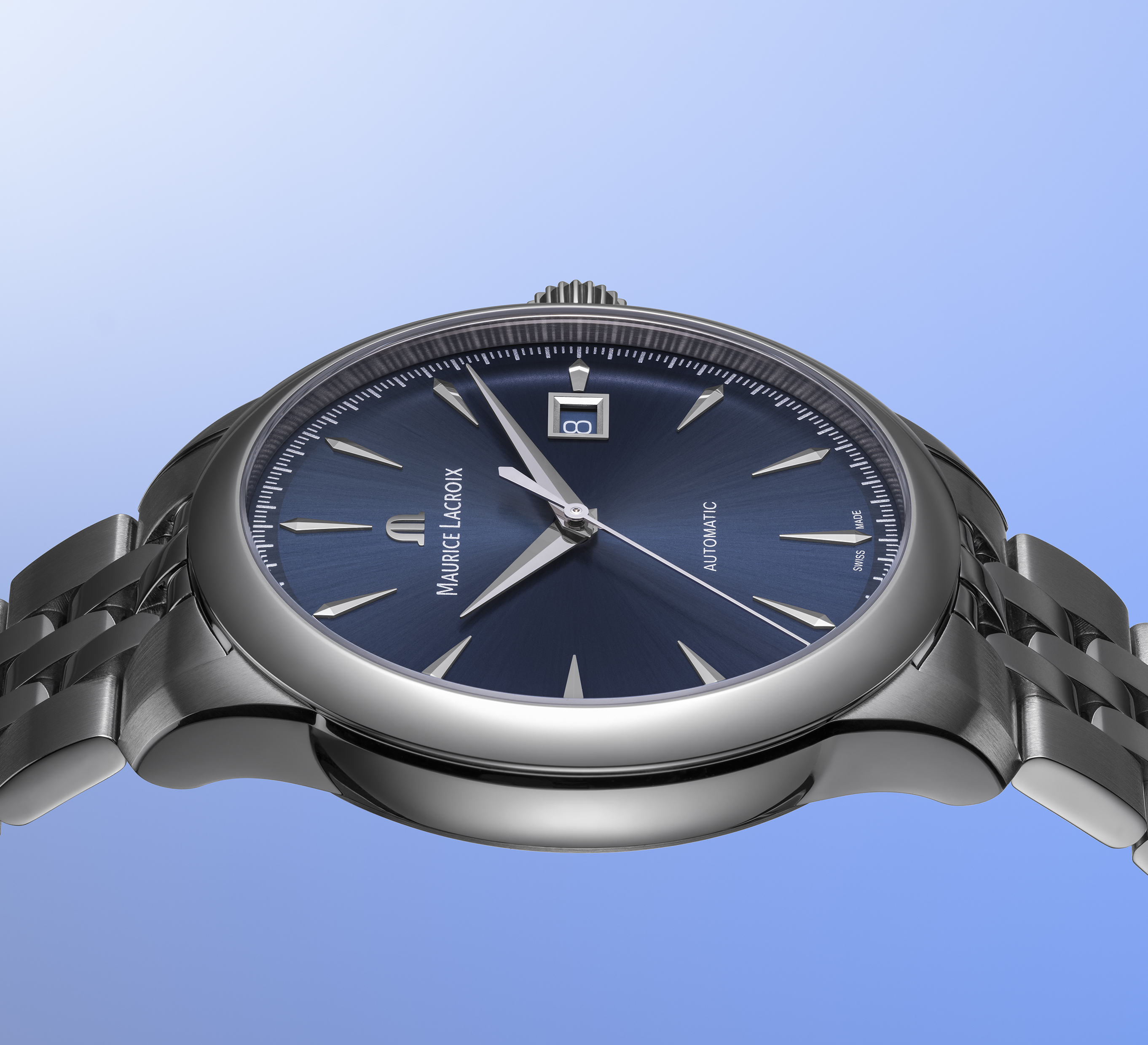 Maurice Lacroix has equipped each version of the collection with a Masterpiece specification case that unites both brushed and polished surfaces to showcase its expertise. A close examination of the caseband reveals an intricate play of contrasting finishes which is a feat that requires immense skill to execute. This blend of finishes is repeated on a new five-row steel bracelet equipped with a folding clasp. The model can alternatively be specified with a color-coordinating leather strap featuring a new embossed logo. Both the bracelet and strap options come with the Easy Strap Exchange system which allows the wearer to adapt the look of their watch with just a few user-friendly clicks.