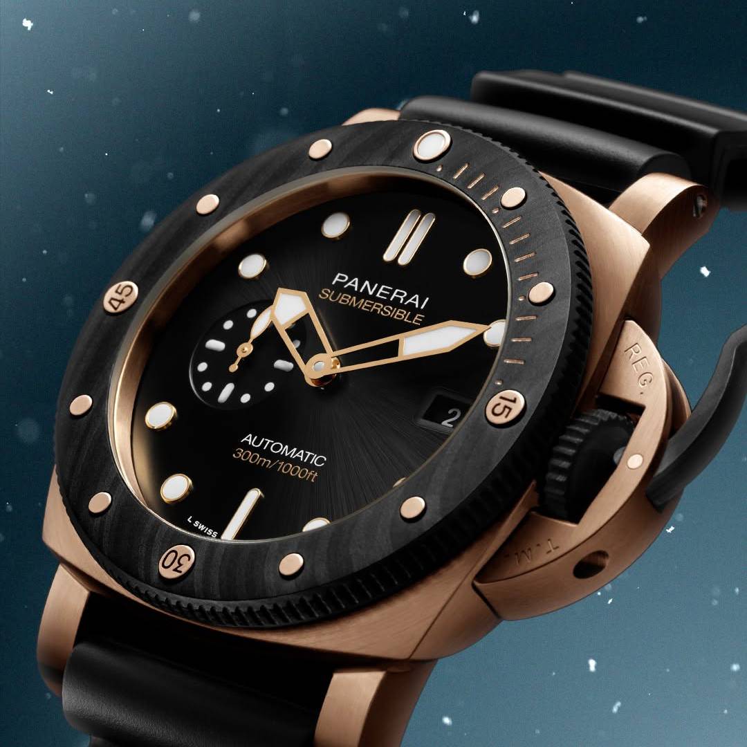 This season, Panerai commands the spotlight with the Submersible Goldtech™ OroCarbo PAM2070, a timepiece that makes a formidable impression through a deliberate play of shadow and light. It is a confident expression of contemporary luxury that remains deeply anchored to the enduring mystery of the sea.