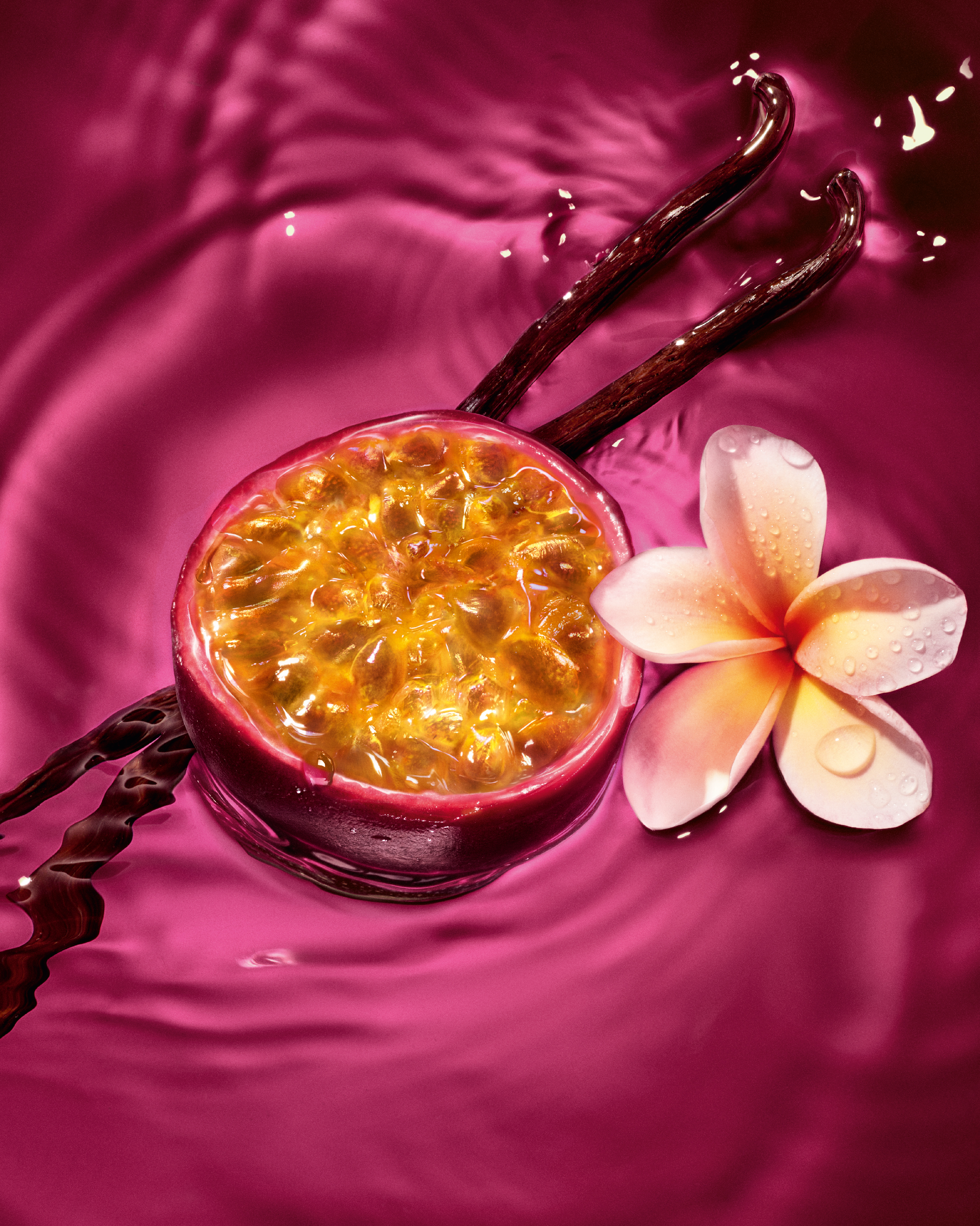 Crafted by perfumers Nisrine Grillié and Nadège Le Garlantezec, the scent is a bold gourmand experience. It begins with a hyper-realistic maracuja passion fruit accord that captures the pure pleasure of the fruit. This tangy opening is elevated by bitter orange and sparkling lemon oil for a long-lasting, radiant impression.