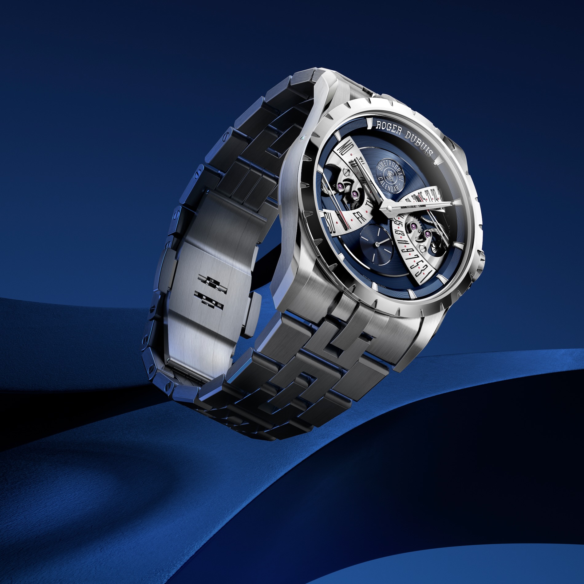 Roger Dubuis completes this horological tribute to the sky with a multi-link stainless steel bracelet for traditional style. For those seeking an alternate look, an additional blue rubber strap with a triple folding clasp is also included. Through precise calendars and horological displays, these novelties do not merely indicate the hours, they also pay tribute to the motion and beauty found beyond our planet.