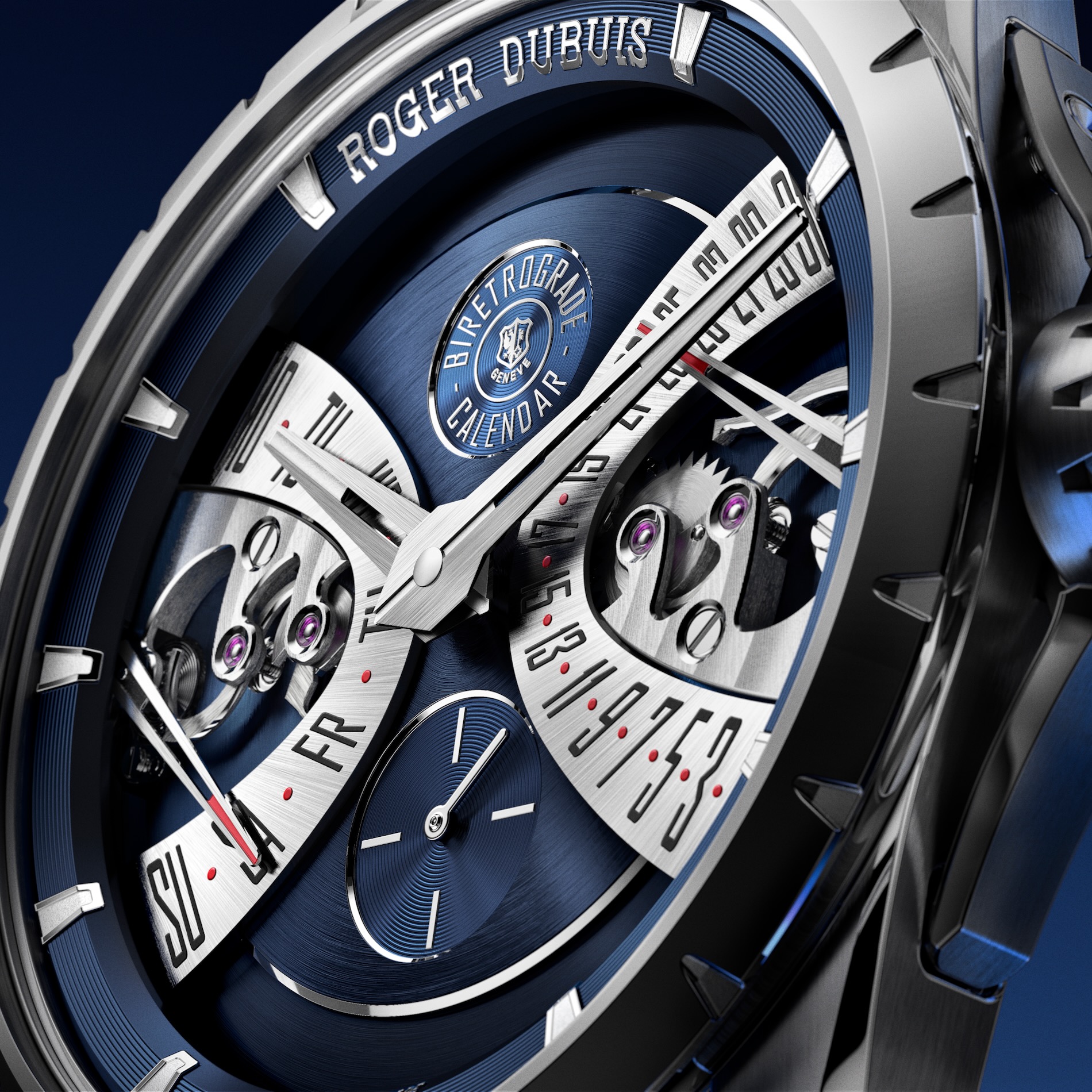 The heart of this creation lies in a passion for the biretrograde, a complication that founder Mr. Roger Dubuis believed should be expressed with simplicity and a certain form of playfulness. Guided by this philosophy, he developed a patented display in 1989 that streamlined the traditional mechanism to enhance both beauty and performance. This ingenious construction purposely evoked joy and emotion for the wearer, reimagining the retrograde movement through a pure yet clever technical lens.