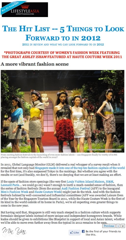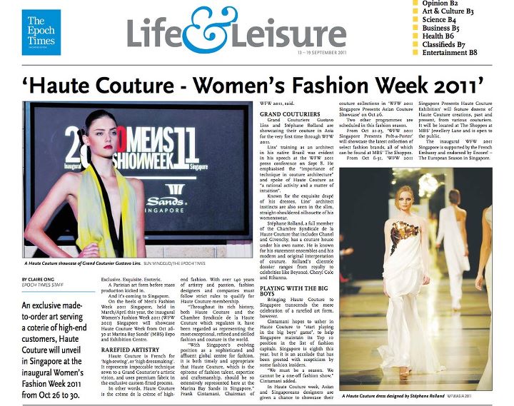 A collection of print coverage on Women's Fashion Week with the press conference held on 8 September 2011 and the event proper, with Haute Couture Week, taking place from 26 to 30 October 2011.