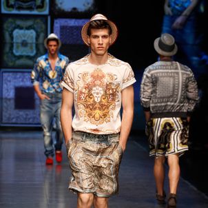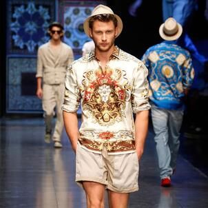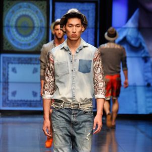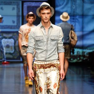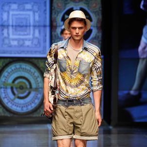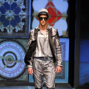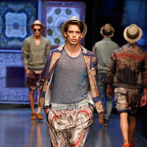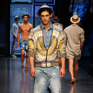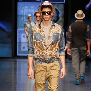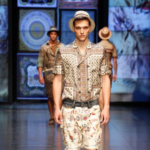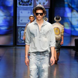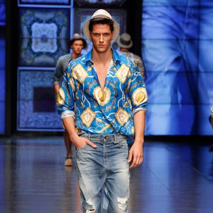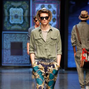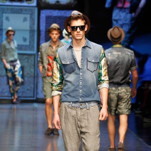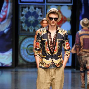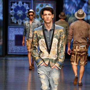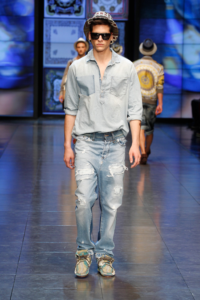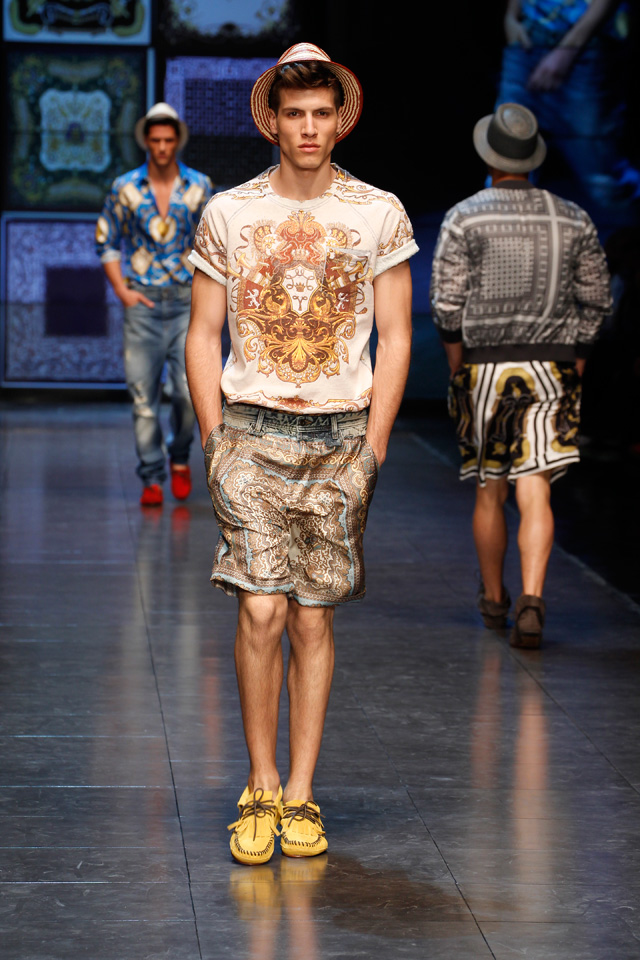 D&G breaks from the pack, bypassing the 70′s and looking to the 80′s for the inspiration of their candy-coated fall collection. Pure fun, the latest range excites the senses with a wide array of vibrant color and tops emblazoned with Mickey Mouse and the iconic Coca-Cola logo. Stealing a scene from Say Anything, wool coats make the perfect companion to denim and easy layered top sets. Whether comfortable in a blazer, oversize fur coat or smart cardigan, D&G delivers the right mood and style for the upcoming fall season.