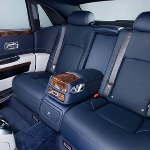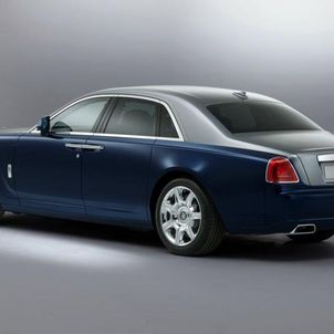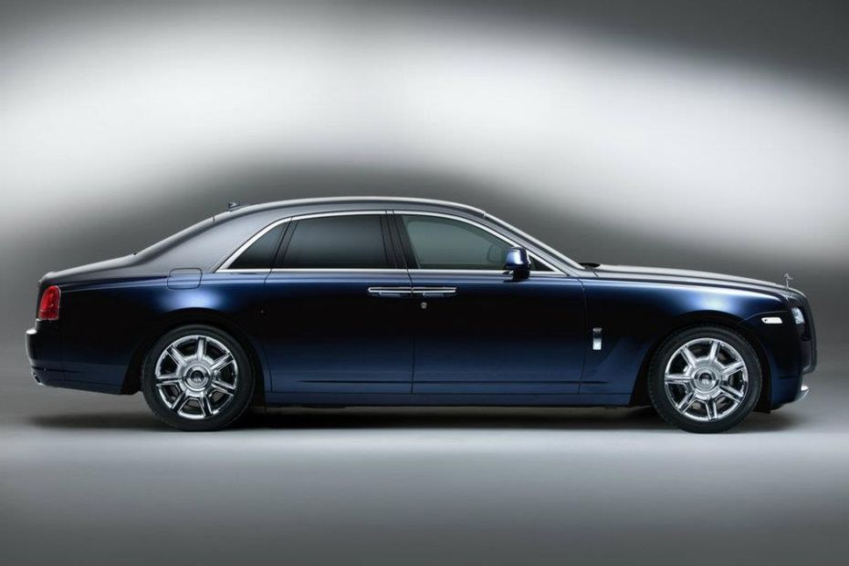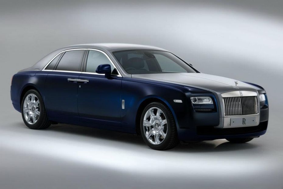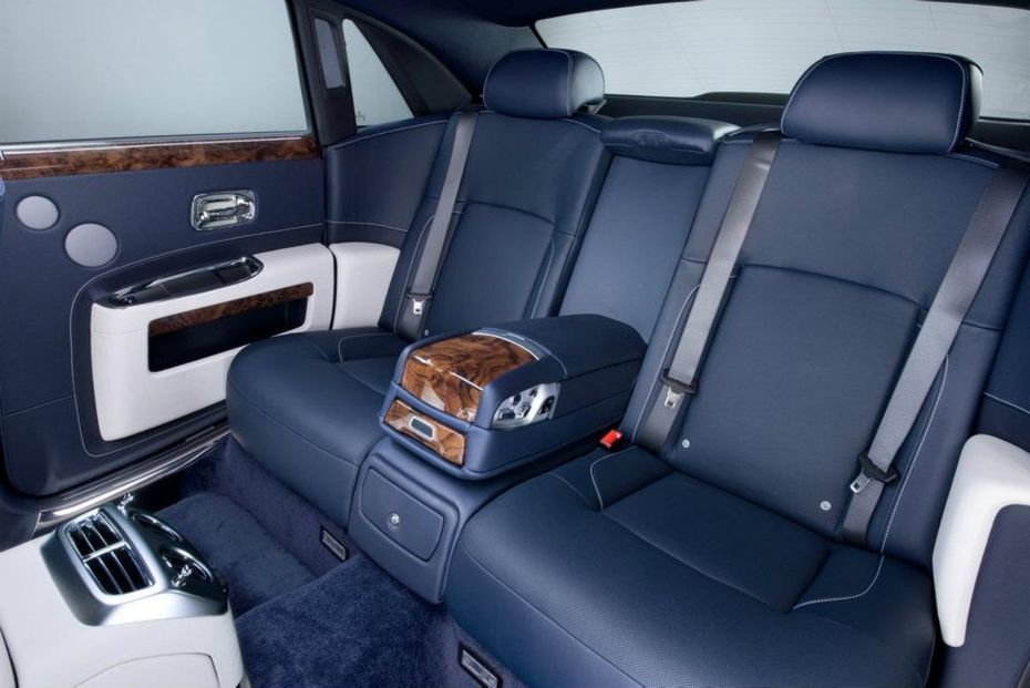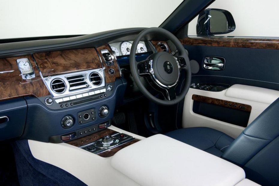 Here is a luxurious look at the Two-tone Ghost in Midnight Sapphire and Jubilee Silver by luxury car maker Rolls-Royce. Commisioned by a client from the UK, the exterior of this two-tone Ghost is painted in Midnight Sapphire with a Jubilee Silver upper on the outside, on the inside, the two-tone aesthetic is replicated with the navy blue leather marked with a seashell accent, contrast stitching in seashell thread as well as navy blue carpeting.