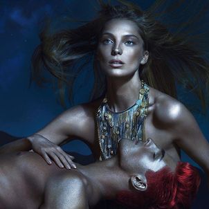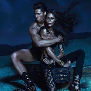 Models Kate Moss, Daria Werbowy and Joan Smalls are glamazons in Versace’s spring 2013 campaign photographed by Mert & Marcus. The trio of leading beauties get surrounded by a group of hunky guys while wearing the form-fitting and sexy silhouettes of the season.