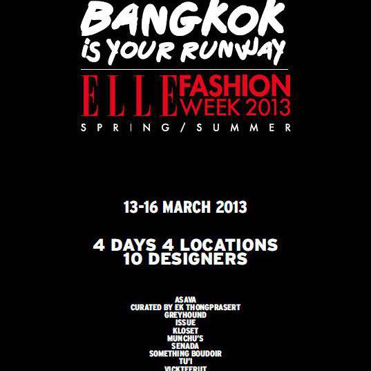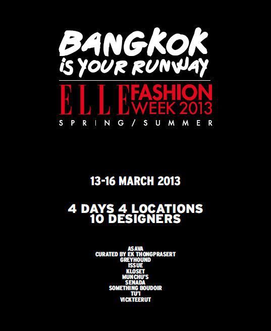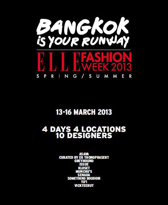 ELLE Fashion Week 2013 สำหรับซีซั่นของ Spring/Summer ในคอนเซ็ปต์ Bangkok is Your Runway ระหว่างวันที่ 13-16 มีนาคมนี้