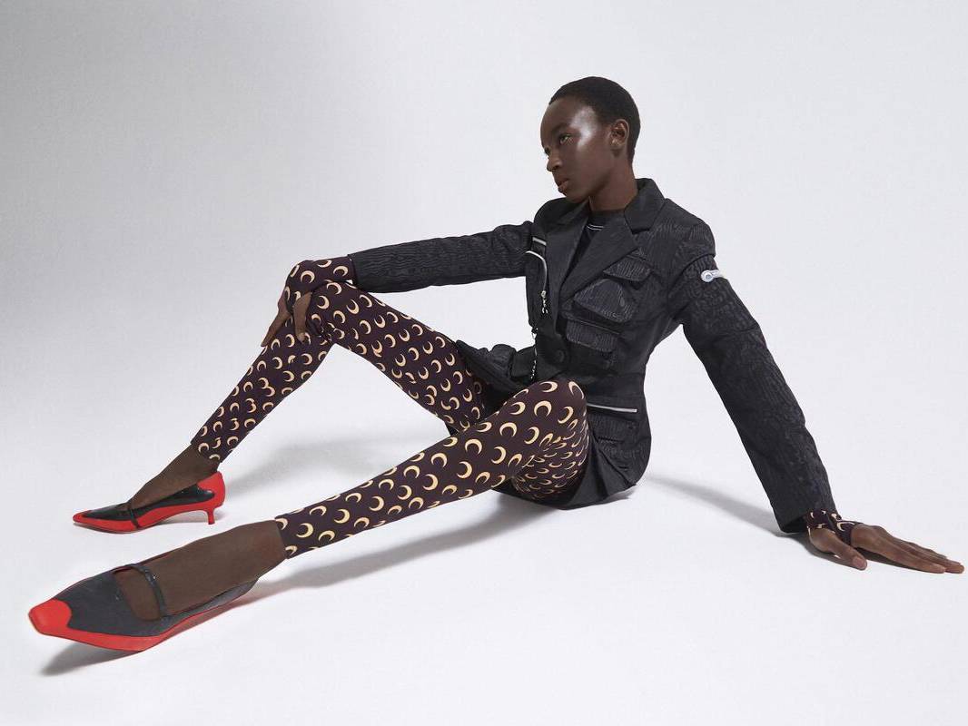 Marine Serre has been enlisted by e-retailer Mytheresa as its latest brand collaborator, coming together with Jimmy Choo to launch a capsule collection of activewear, upcycled pieces and footwear.