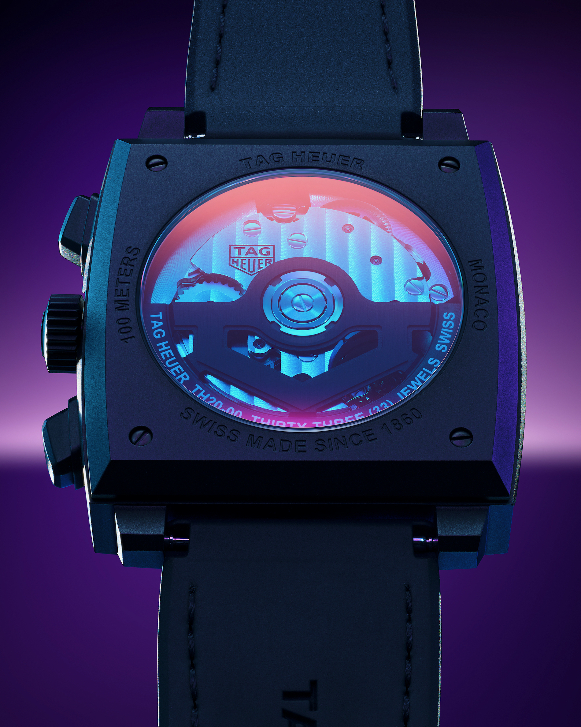 Even the caseback joins the performance, featuring a sapphire crystal with iridescent metallization that shifts chromatically with the light, ensuring the watch looks as dynamic off the wrist as it does on it.
