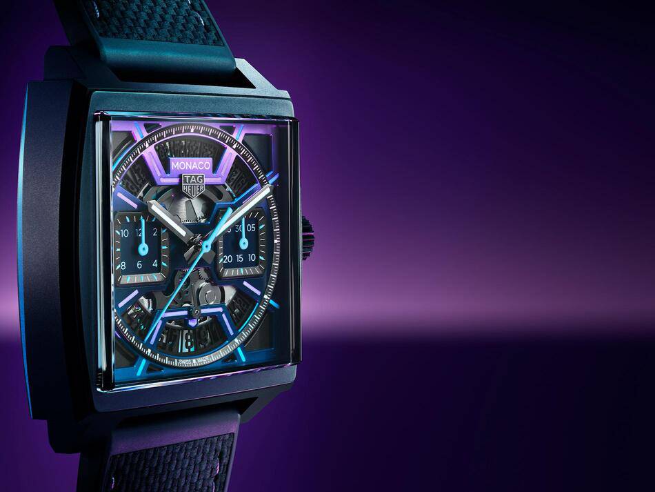 It is precisely this nocturnal fever dream—where the adrenaline of the track collides with the electric haze of the Strip—that TAG Heuer channels with its latest release. Just in time for the race, the Swiss watchmaker has unveiled a daring, limited-edition reimagining of its most legendary silhouette: the TAG Heuer Monaco Chronograph.